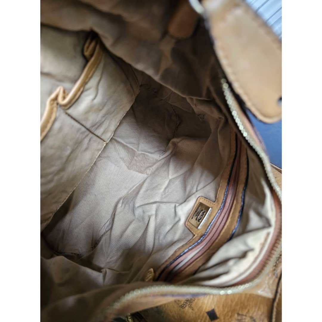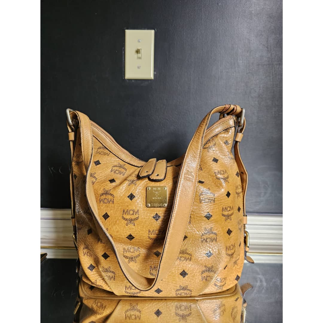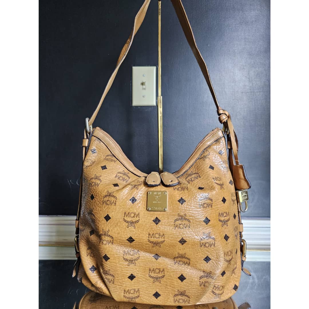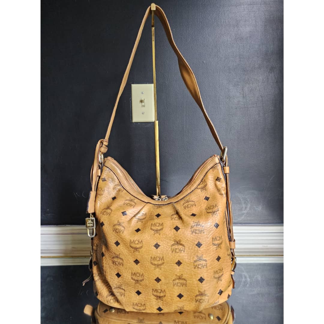 This authentic MCM Visetos Hobo Cognac is in it’s good pre-owned condition. The exterior canvas is clean and beautiful, slight wear by the pleated corners of the bag. ( Kindly look at pictures above closely. It’s not obvious) Interior is clean little pen mark. Gold hardware with little scratches. It can be worn as a shoulder/crossbody bag. Has an adjustable strap.
