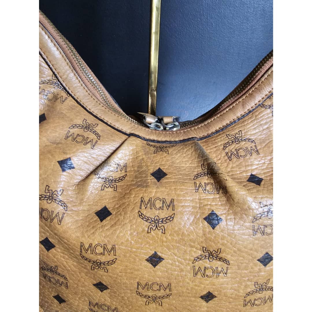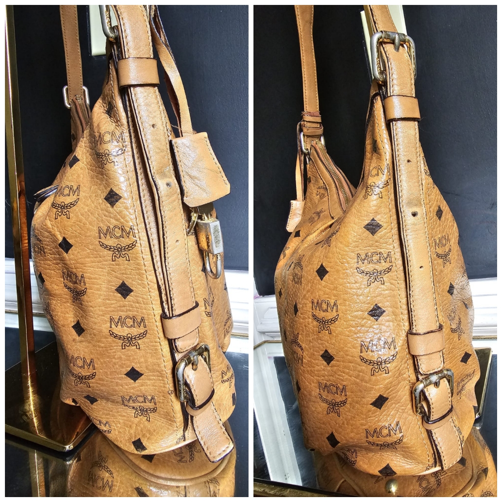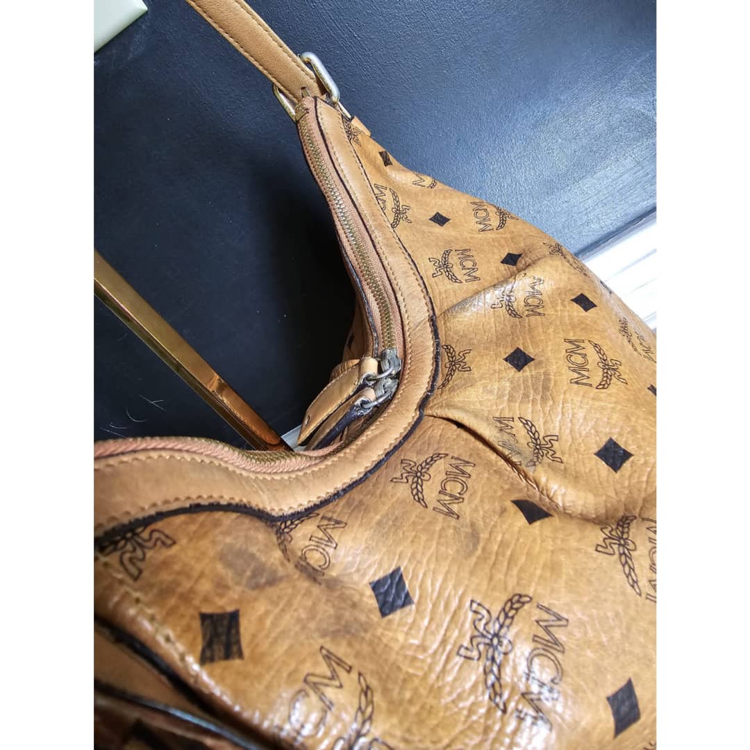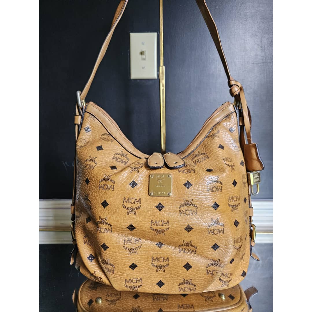 This authentic MCM Visetos Hobo Cognac is in it’s good pre-owned condition. The exterior canvas is clean and beautiful, slight wear by the pleated corners of the bag. ( Kindly look at pictures above closely. It’s not obvious) Interior is clean little pen mark. Gold hardware with little scratches. It can be worn as a shoulder/crossbody bag. Has an adjustable strap.