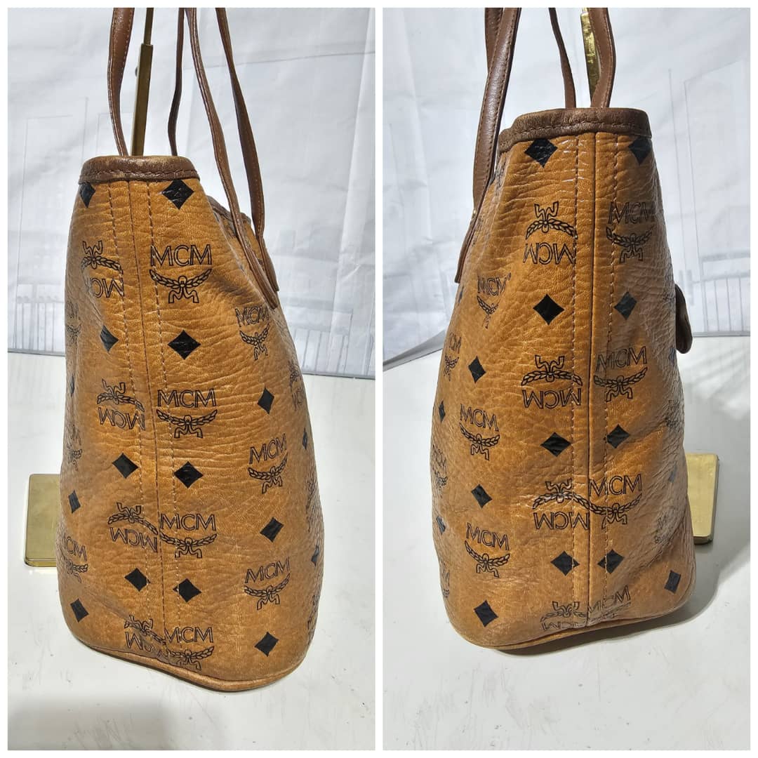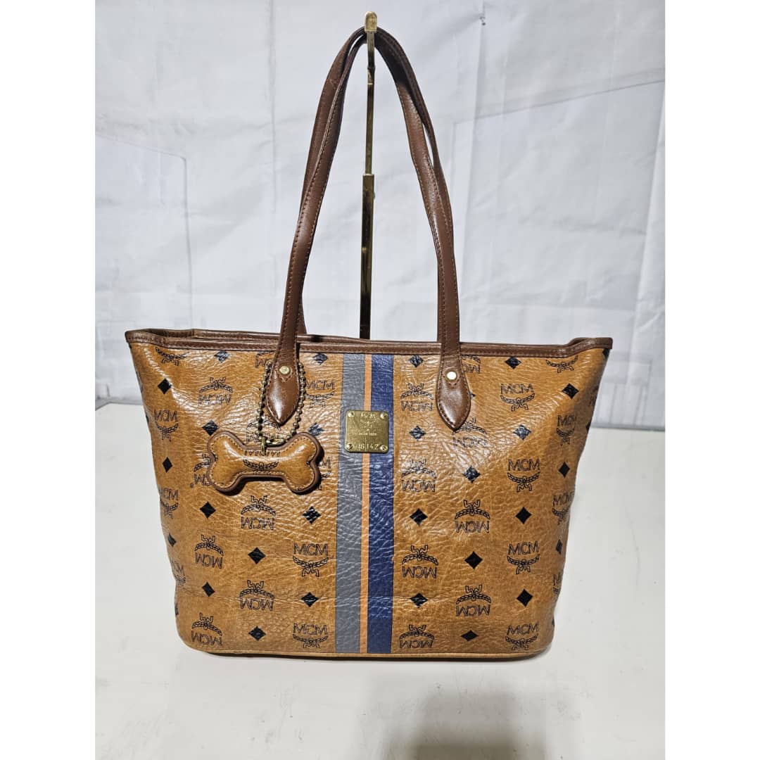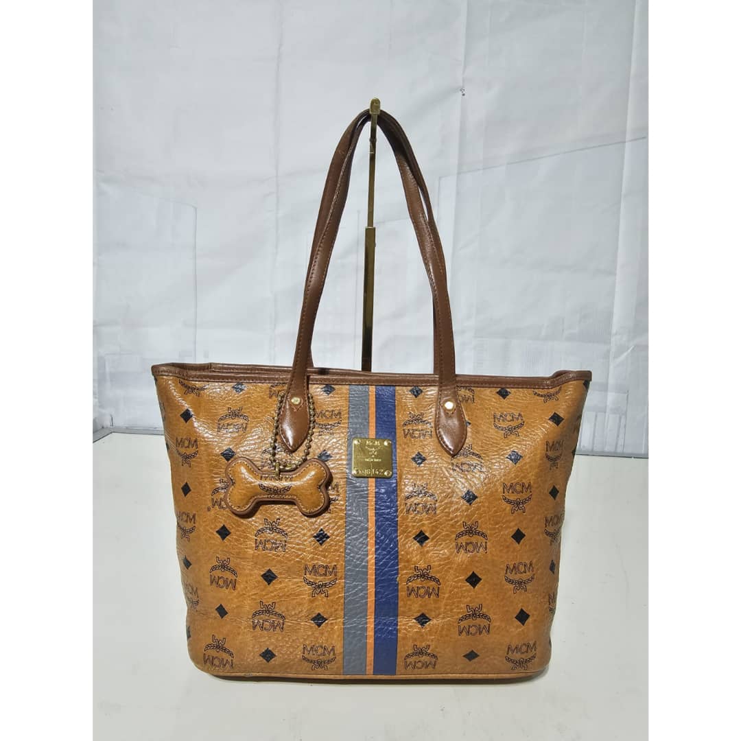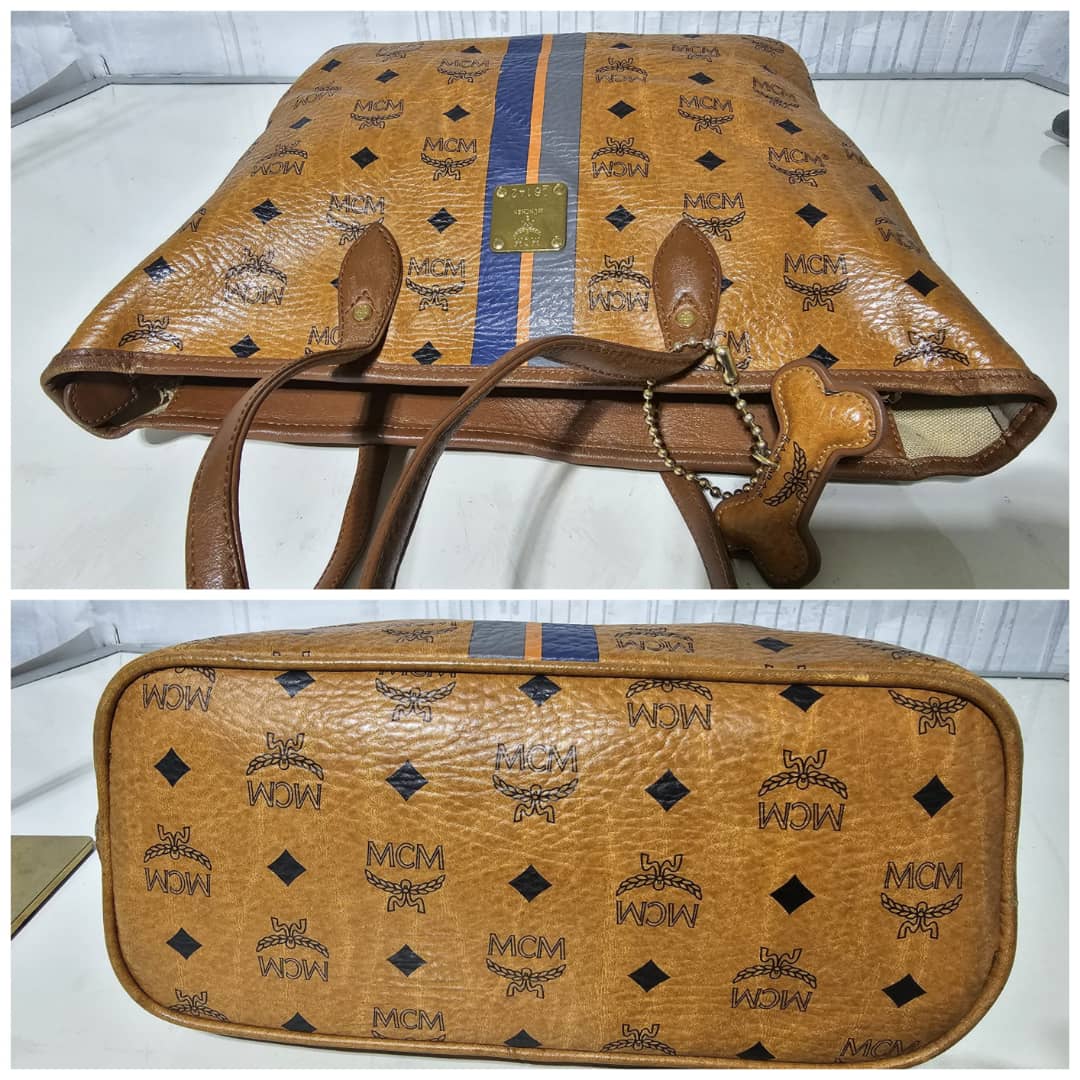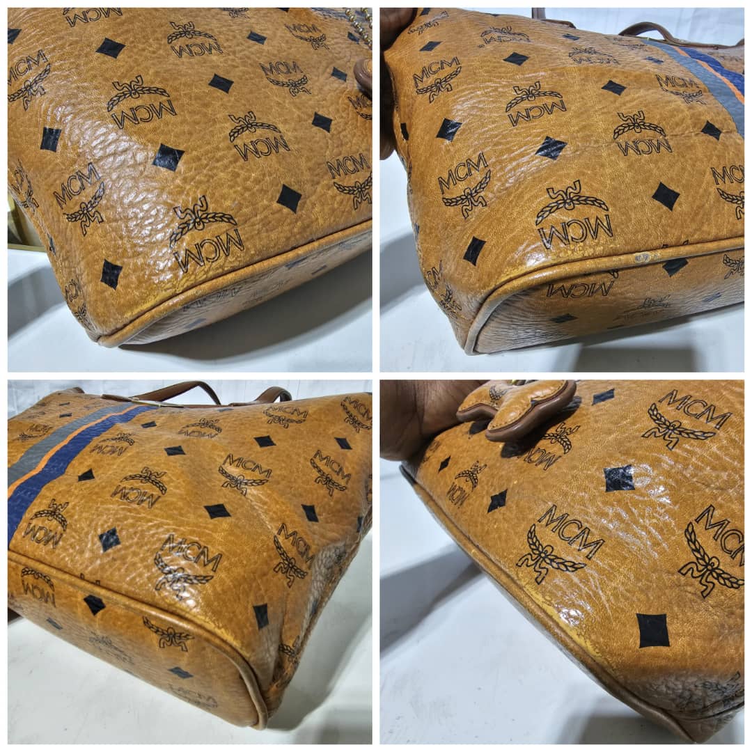 This authentic MCM Visetos Dog Bone Striped Shopper Tote Cognac is in it’s good pre-owned condition. The exterior leather is clean and beautiful. Interior is clean with little pen marks(Kindly review pictures above).
