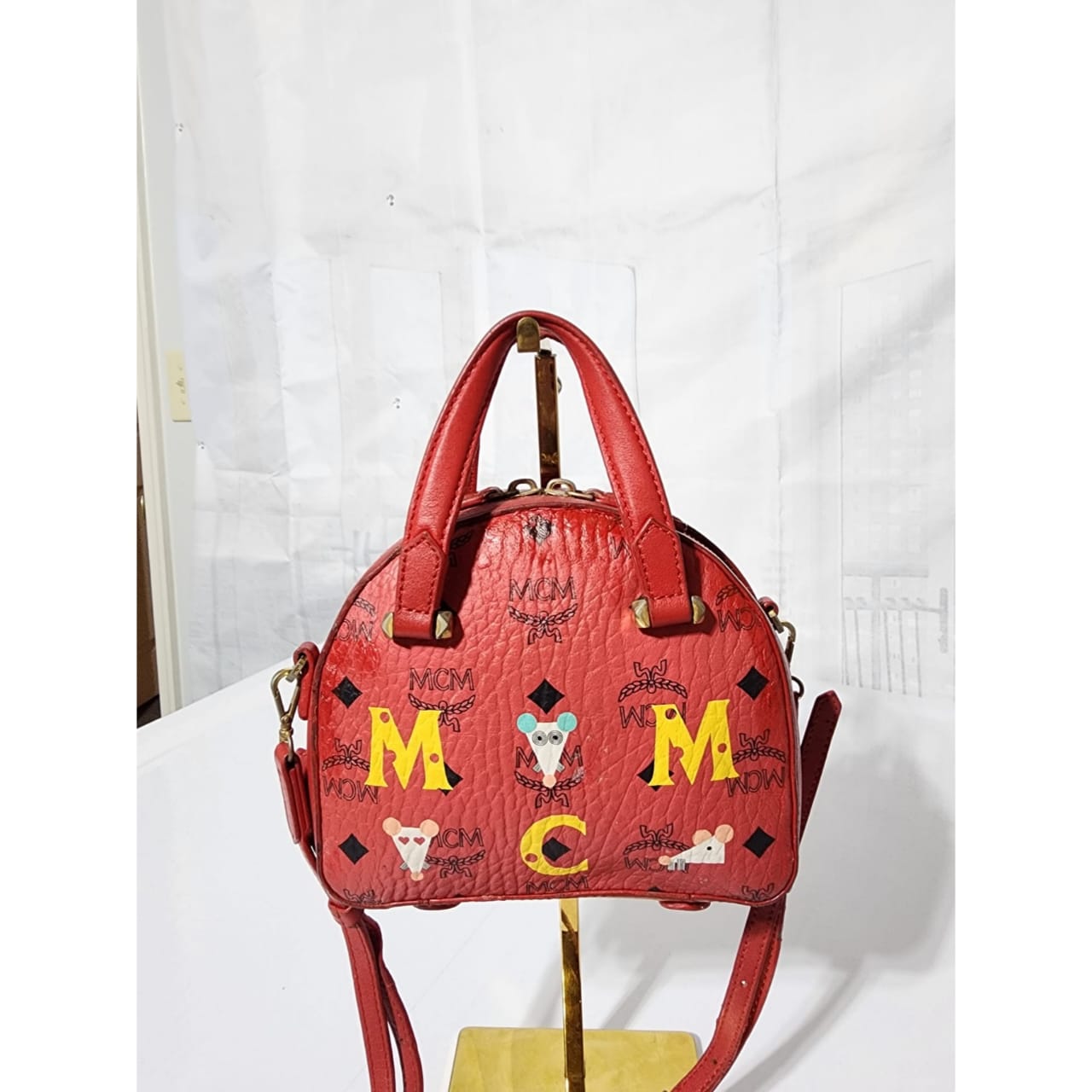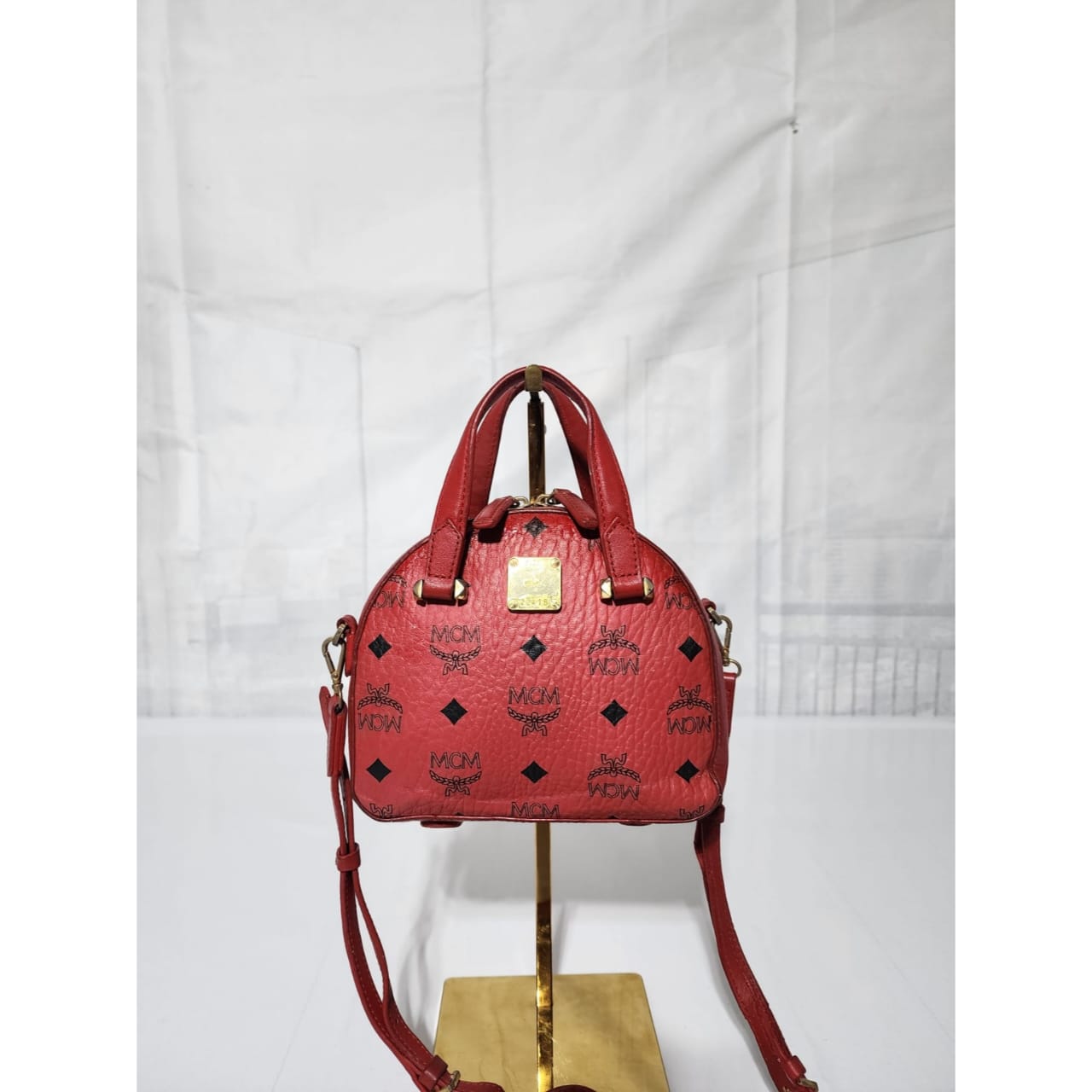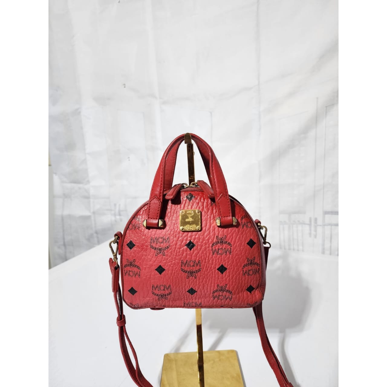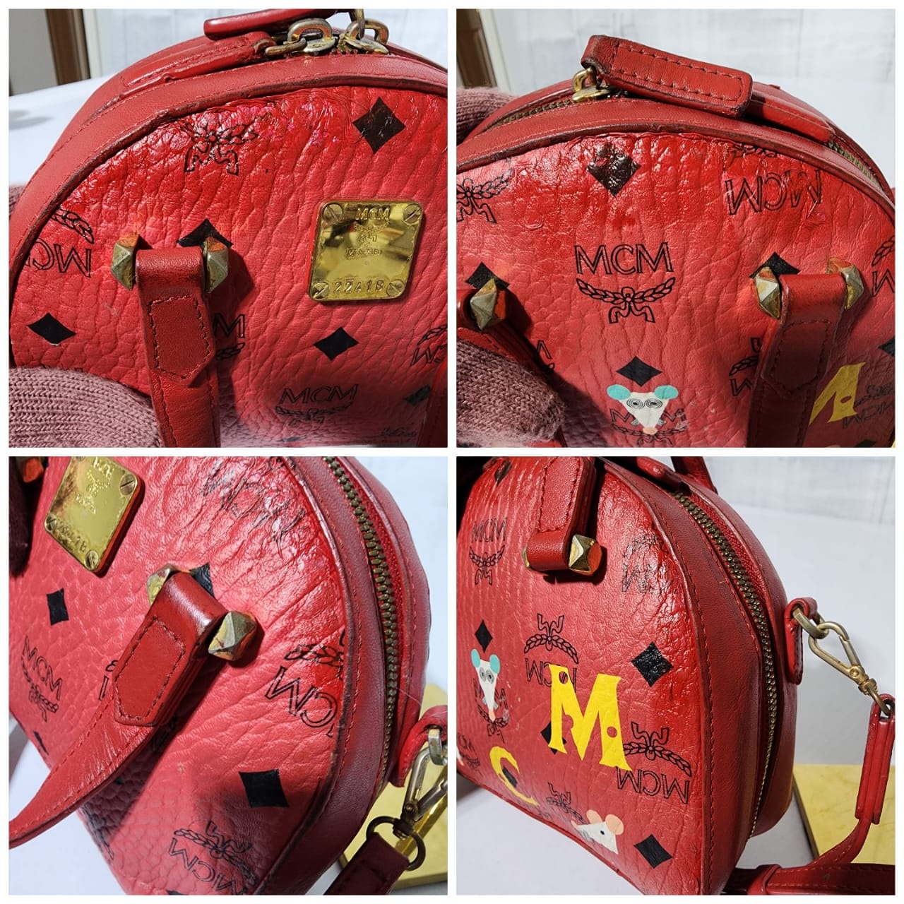 This authentic MCM Visetos Essential Mini Tote Bag Red is in it’s pre-owned condition. The exterior coated canvas is clean however, it shows some sign of wear to it. The top trim shows some smudging of the canvas. The top back of the bag shows some smudging to it (Kindly look at pictures above for details). Interior is clean. Hardware shows scratches and rubbing to it. The long strap shows sign of wear.