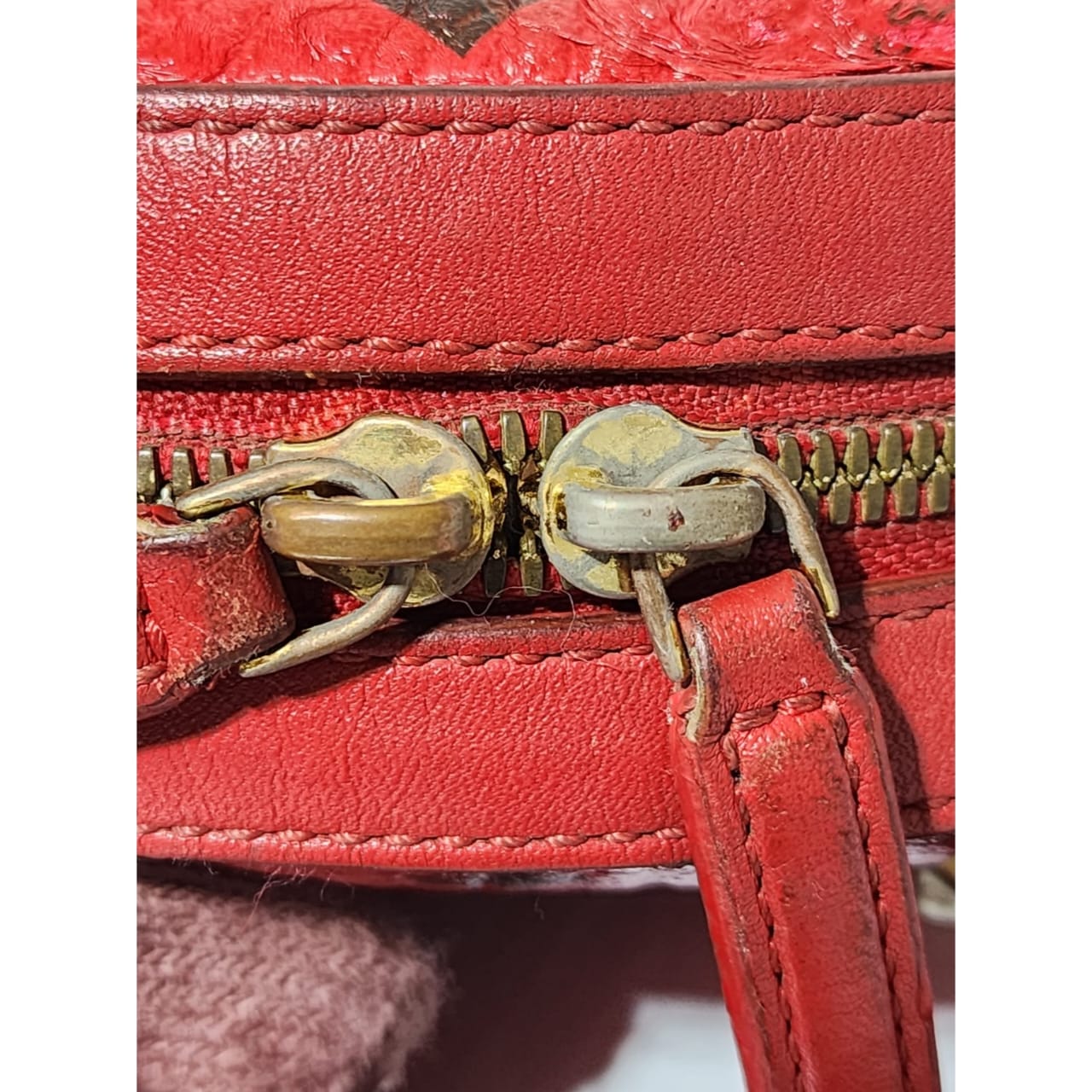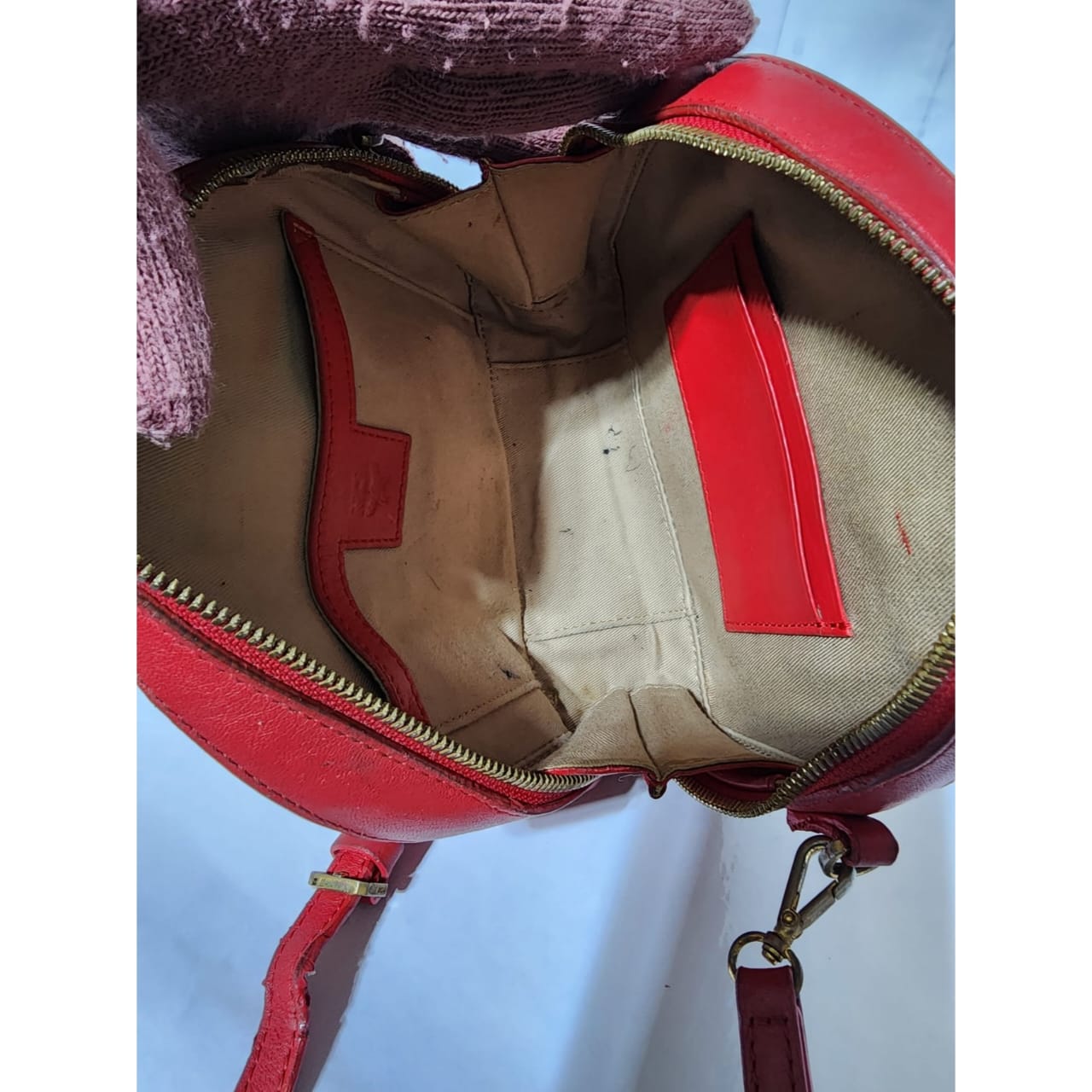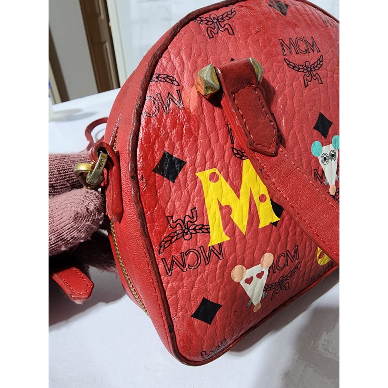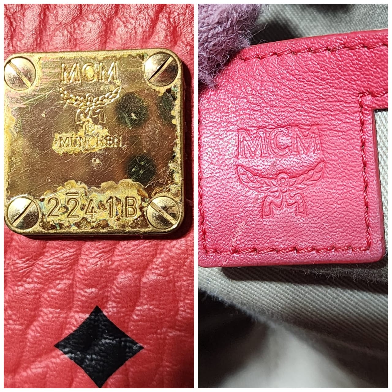 This authentic MCM Visetos Essential Mini Tote Bag Red is in it’s pre-owned condition. The exterior coated canvas is clean however, it shows some sign of wear to it. The top trim shows some smudging of the canvas. The top back of the bag shows some smudging to it (Kindly look at pictures above for details). Interior is clean. Hardware shows scratches and rubbing to it. The long strap shows sign of wear.