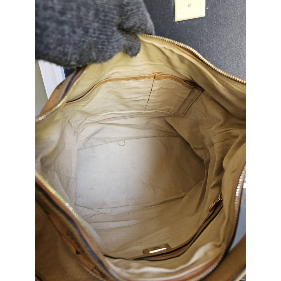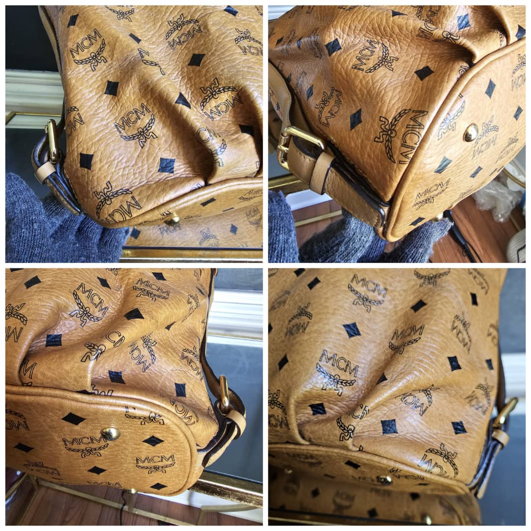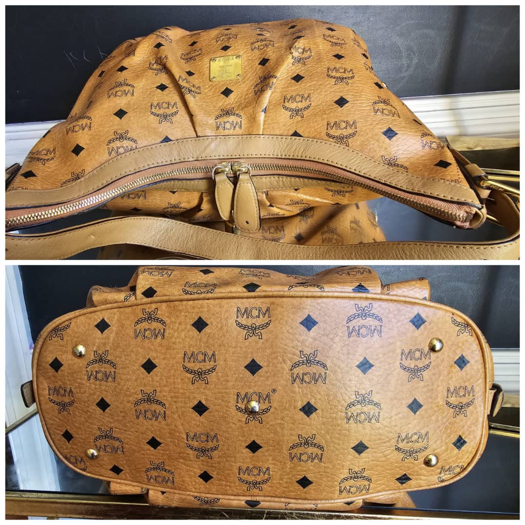 This authentic MCM Visetos Hobo Cognac is in it’s good pre-owned condition. The exterior canvas is very clean and beautiful. Interior is clean. Gold hardware with little scratches. It can be worn as a shoulder/crossbody bag. Has an adjustable strap.