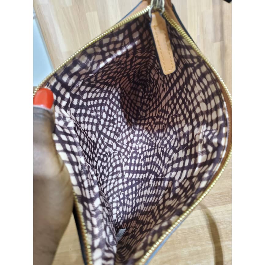 Visetos Large Pochette Bag is in it’s good pre-owned condition . The exterior coated canvas is clean and beautiful interior is clean. Great for girls hangout or store runs