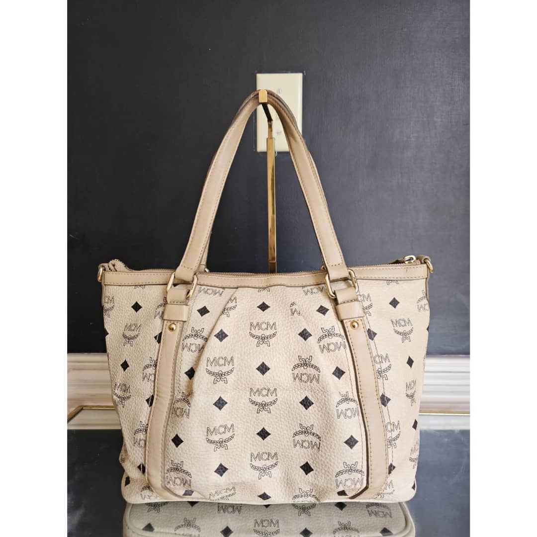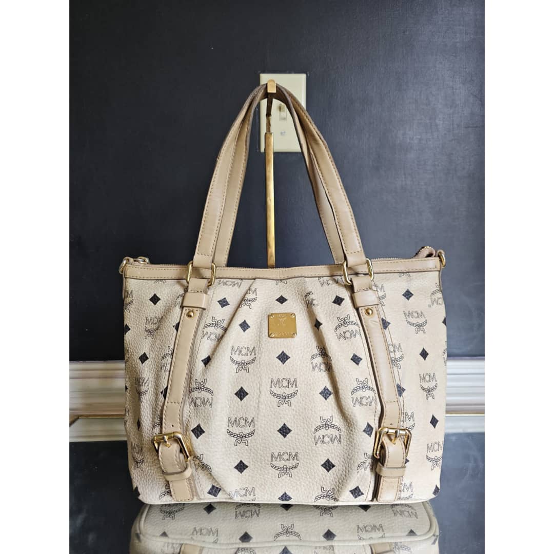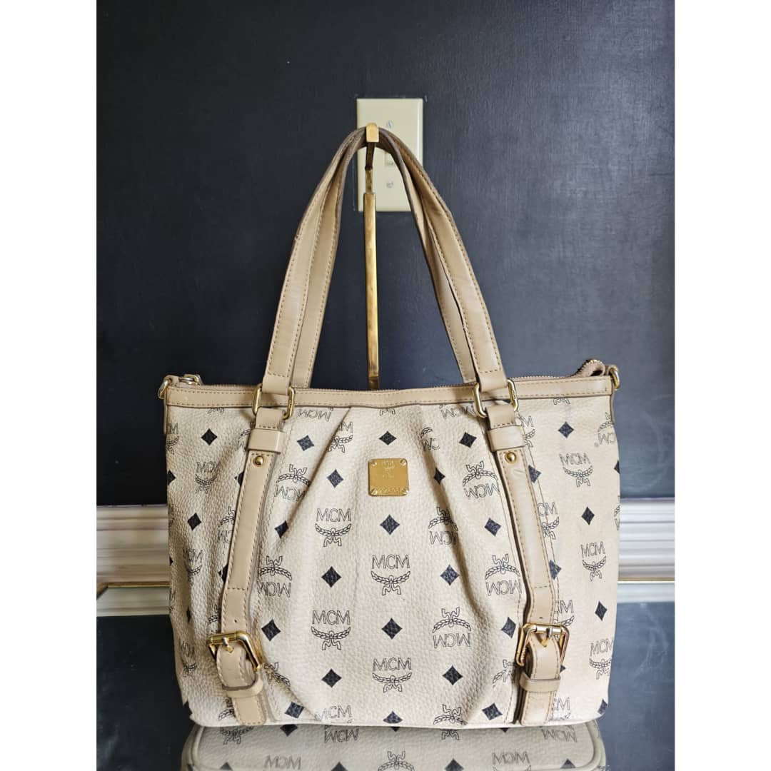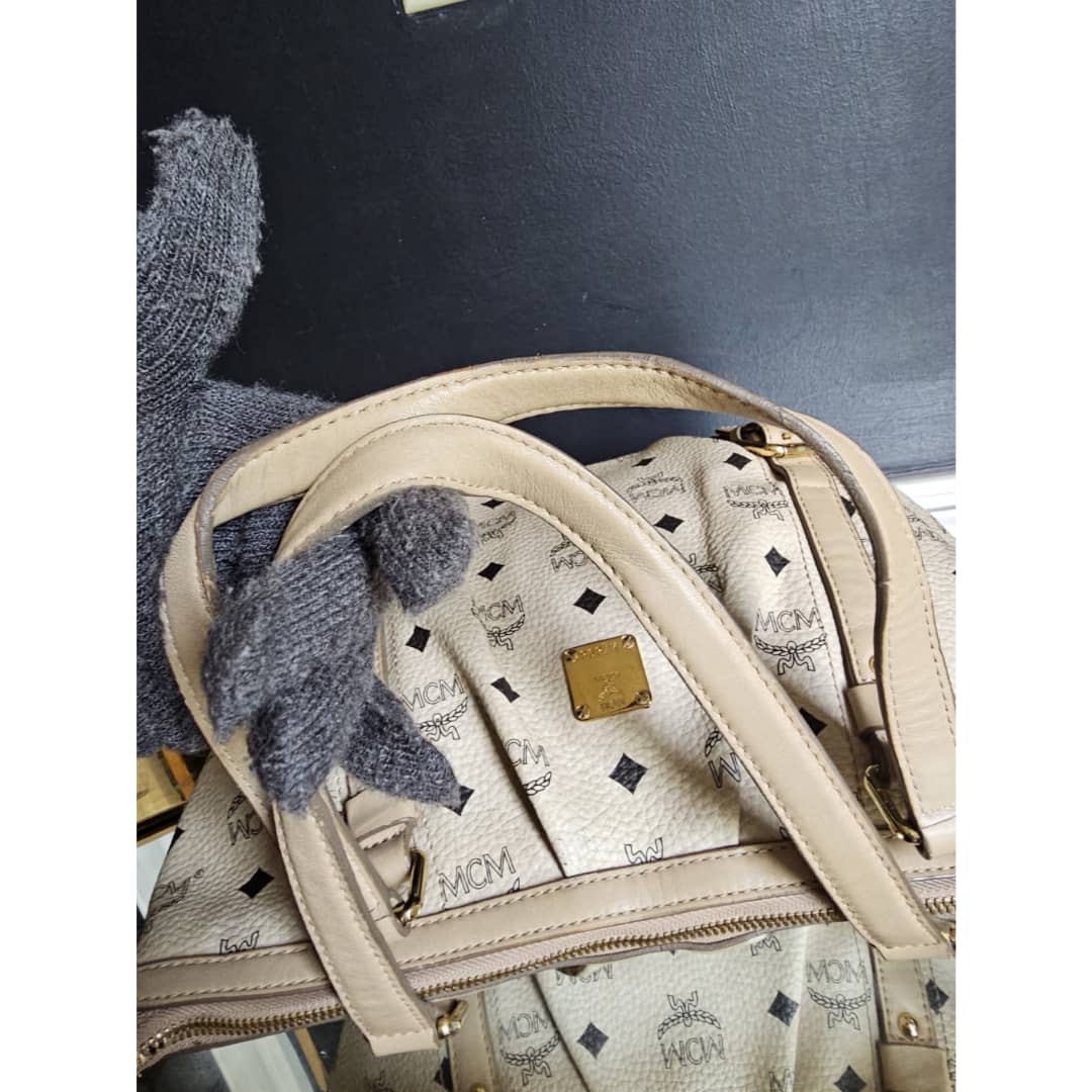 This authentic MCM Visetos Leather Bag Black/Beige is in it’s good pre-owned condition. The exterior leather is clean and beautiful. Interior is clean. Gold hardware,shows little scratches. No long shoulder strap. I will add a chain strap