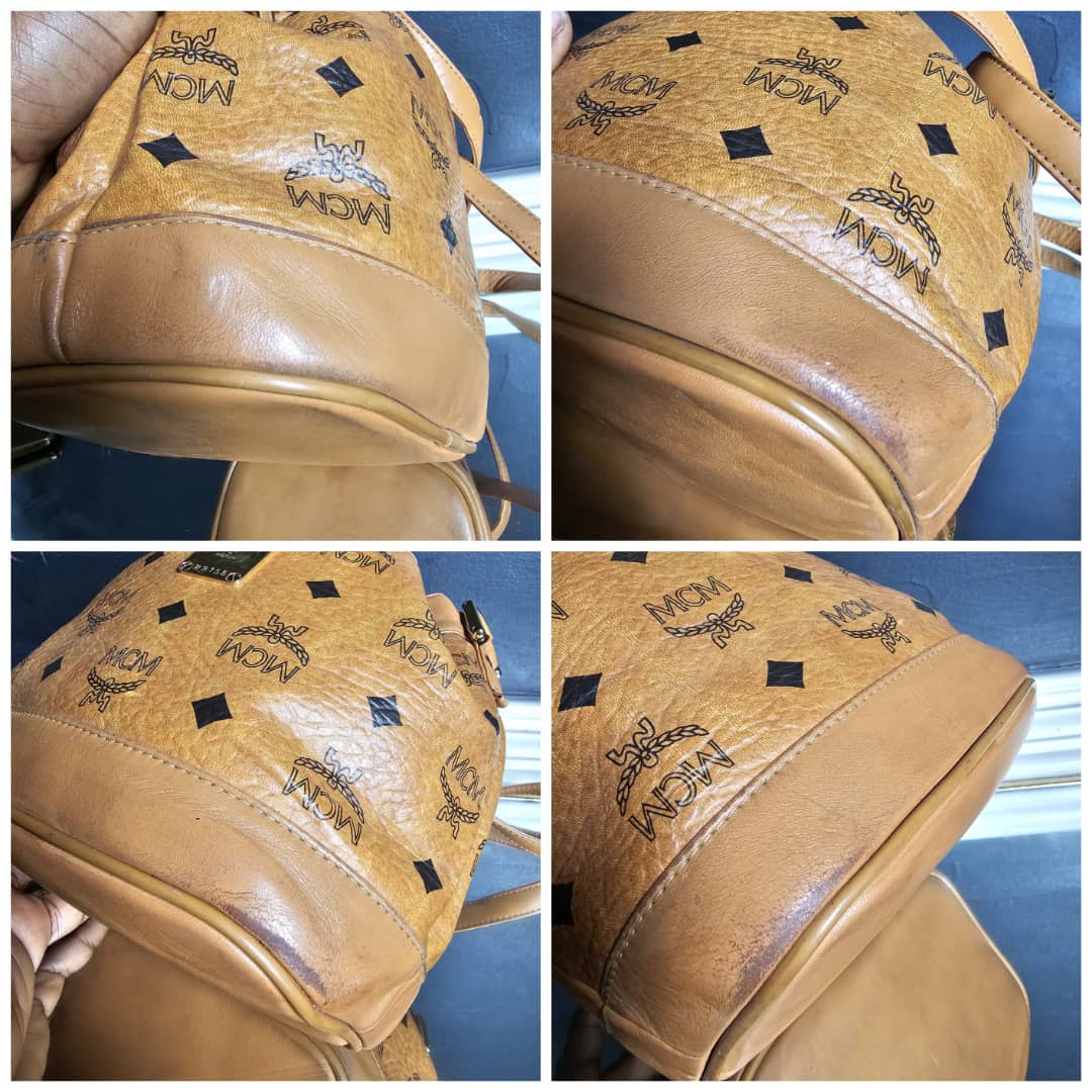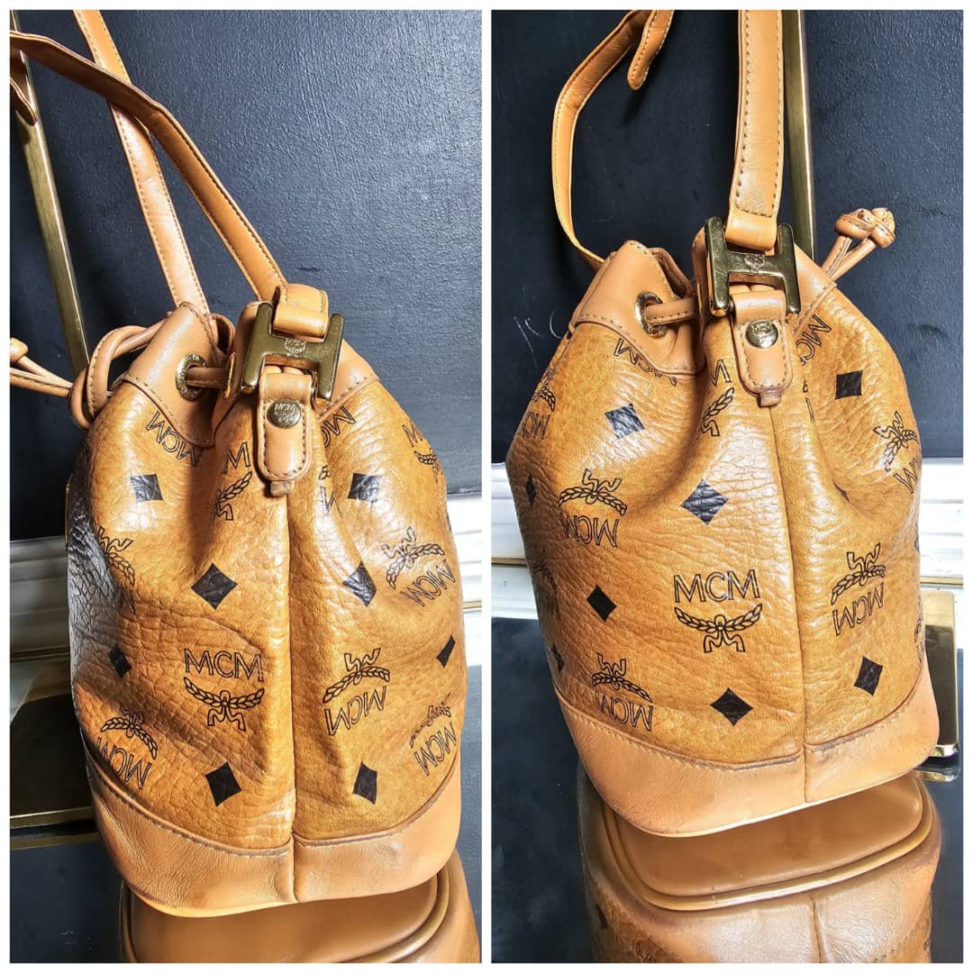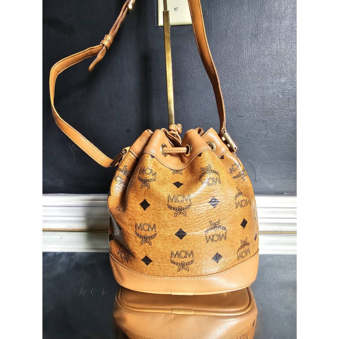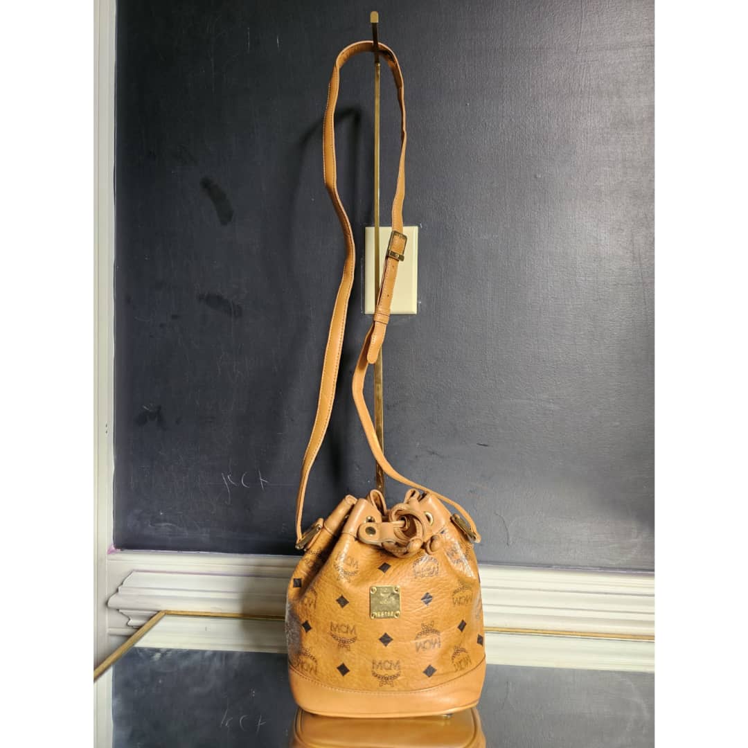 This authentic MCM Brown Visetos Leather Drawstring Bucket Bag is in it’s good pre-owned condition. The exterior leather is clean and beautiful. Some scratches on the base edges. Interior is clean. Gold hardware.