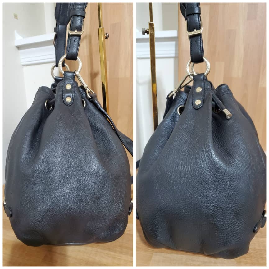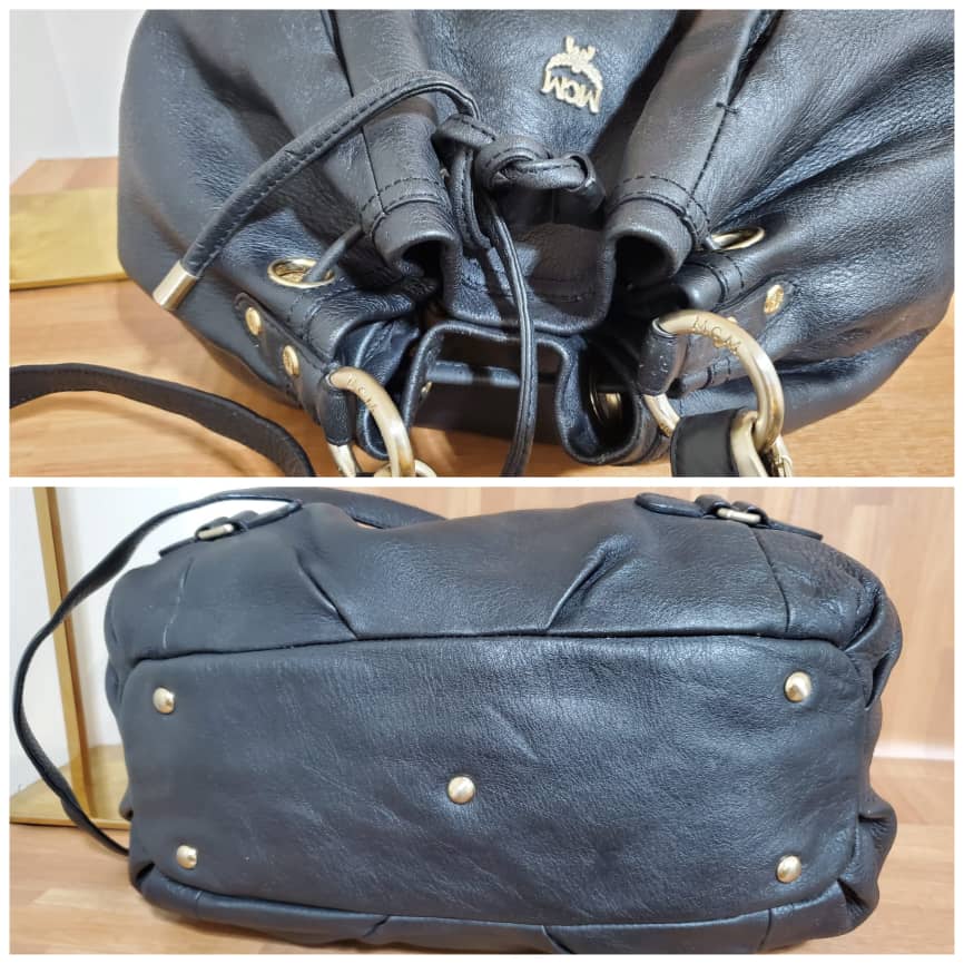 This authentic MCM Visetos Leather Drawstring Bucket Bag is in it’s pre-owned good condition.has sign of use. The exterior leather is clean and beautiful. Interior is clean. Overall great condition