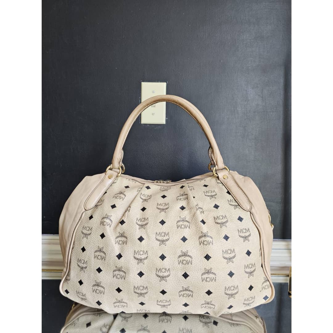 This authentic MCM Visetos Medium Essentials Shoulder Bag Beige is in it’s good pre-owned condition. The exterior canvas is clean and beautiful. Interior is clean. Handle shows little rubbing.