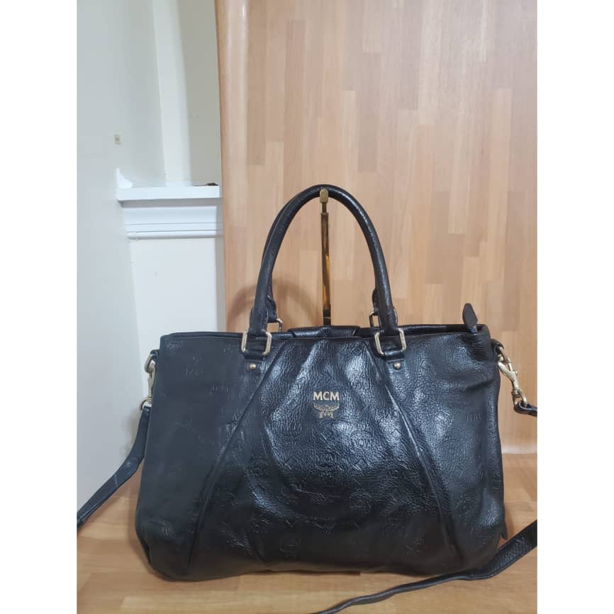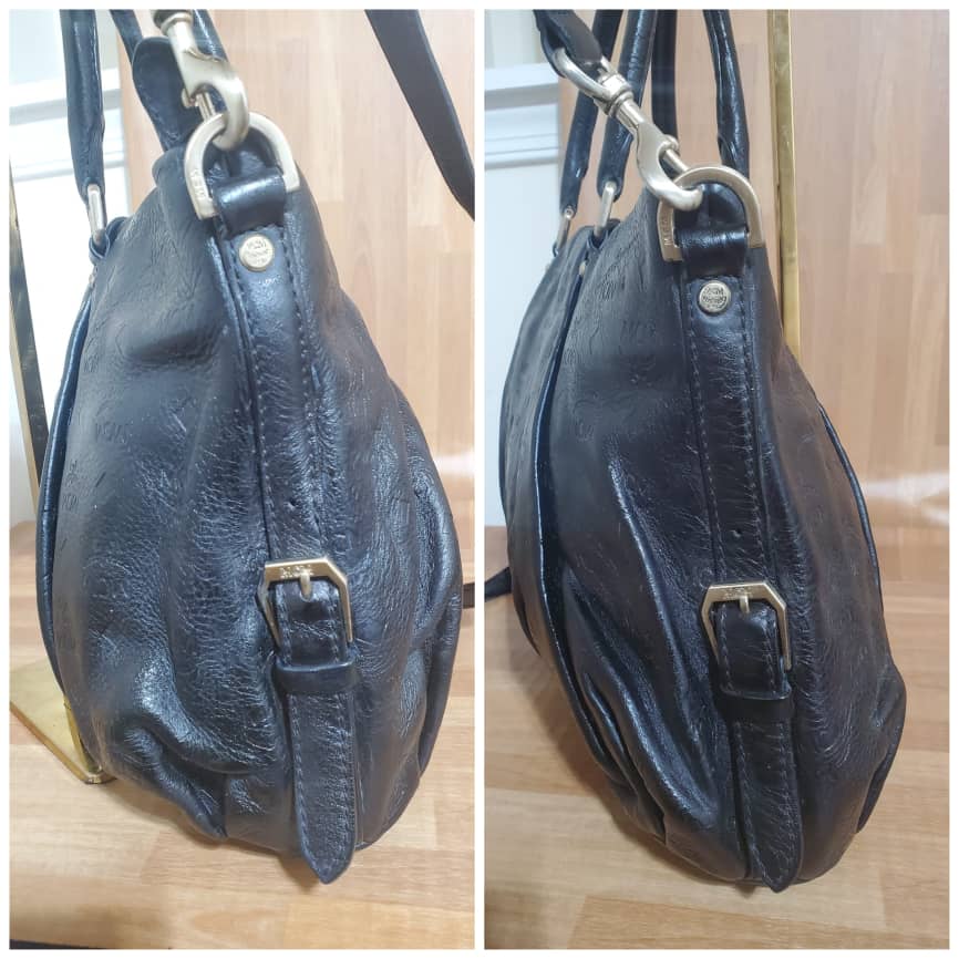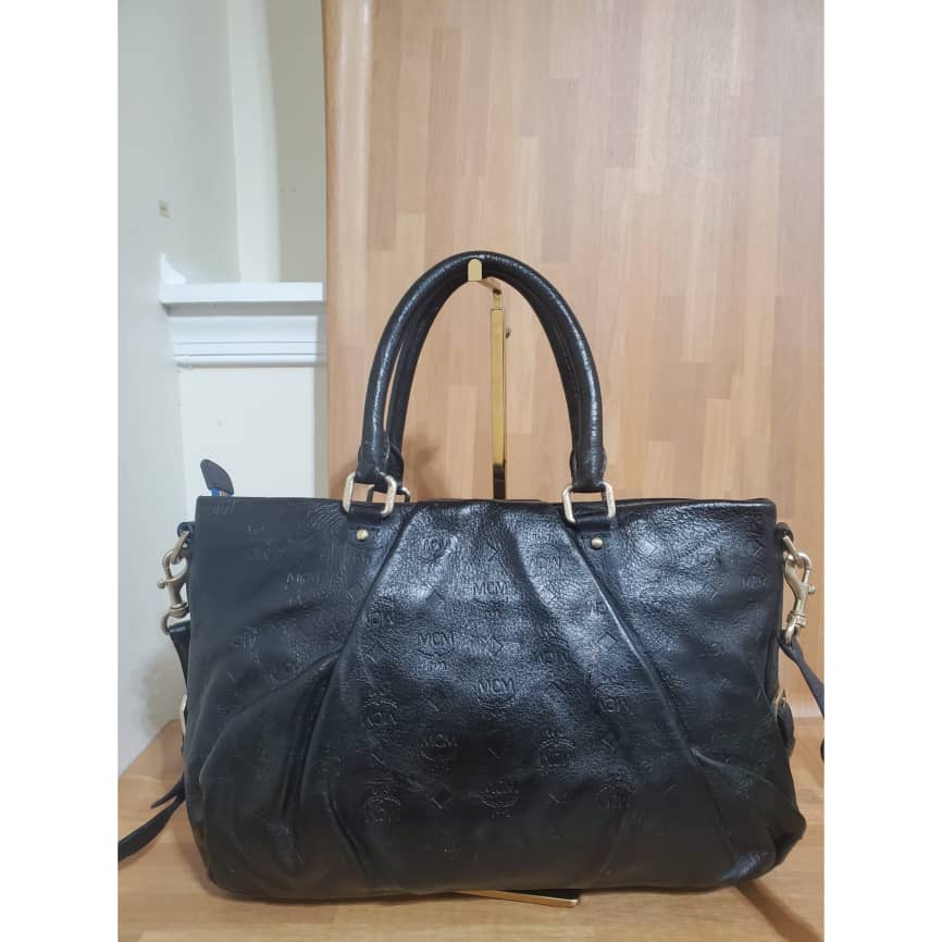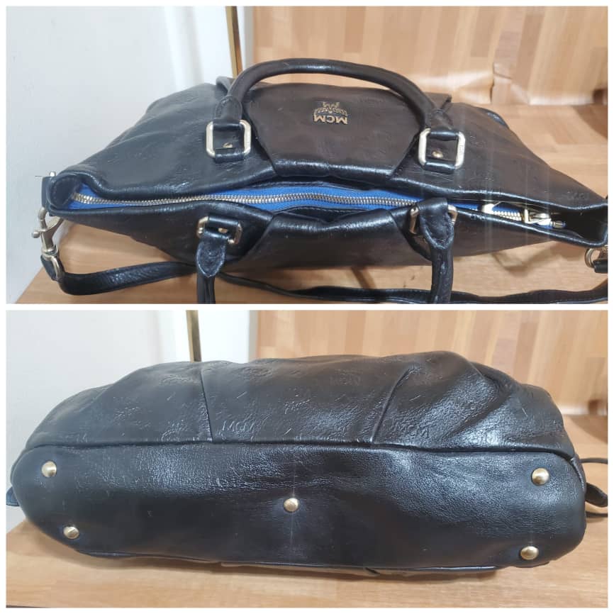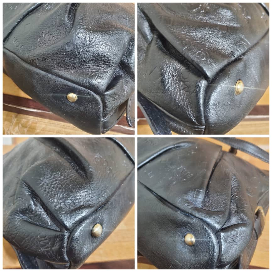 This authentic MCM Visetos Monogram Leather Satchel Bag Black is in it’s pre-owned condition. has sign of use . Exterior leather is clean and beautiful. Interior is clean. Some scratches on the exterior corners.