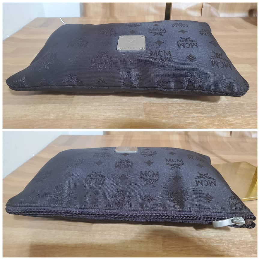 This authentic MCM vintage Visetos Monogram Nylon Flat Clutch, silver hardware is in it’s pre-owned condition.has sign of use. The exterior is clean and beautiful .interior is clean.