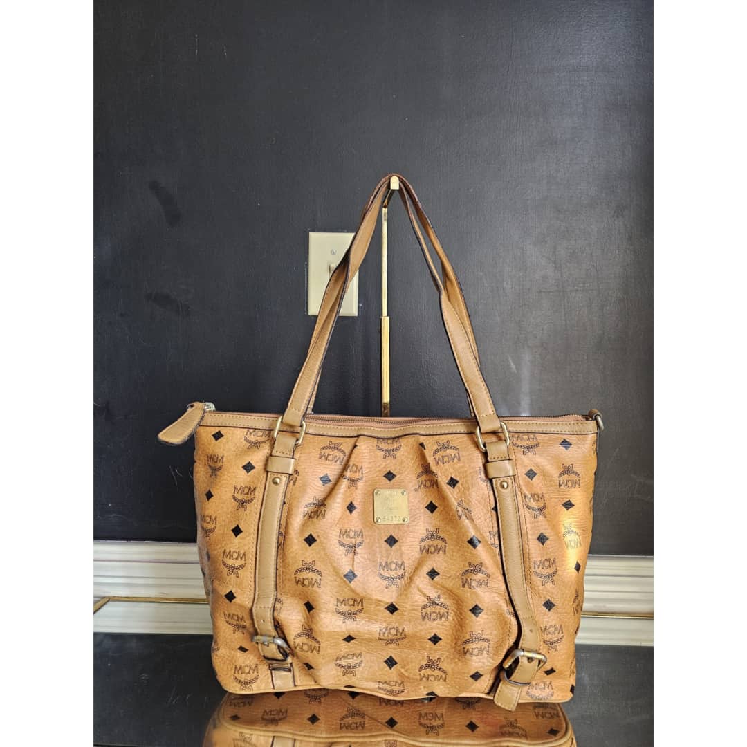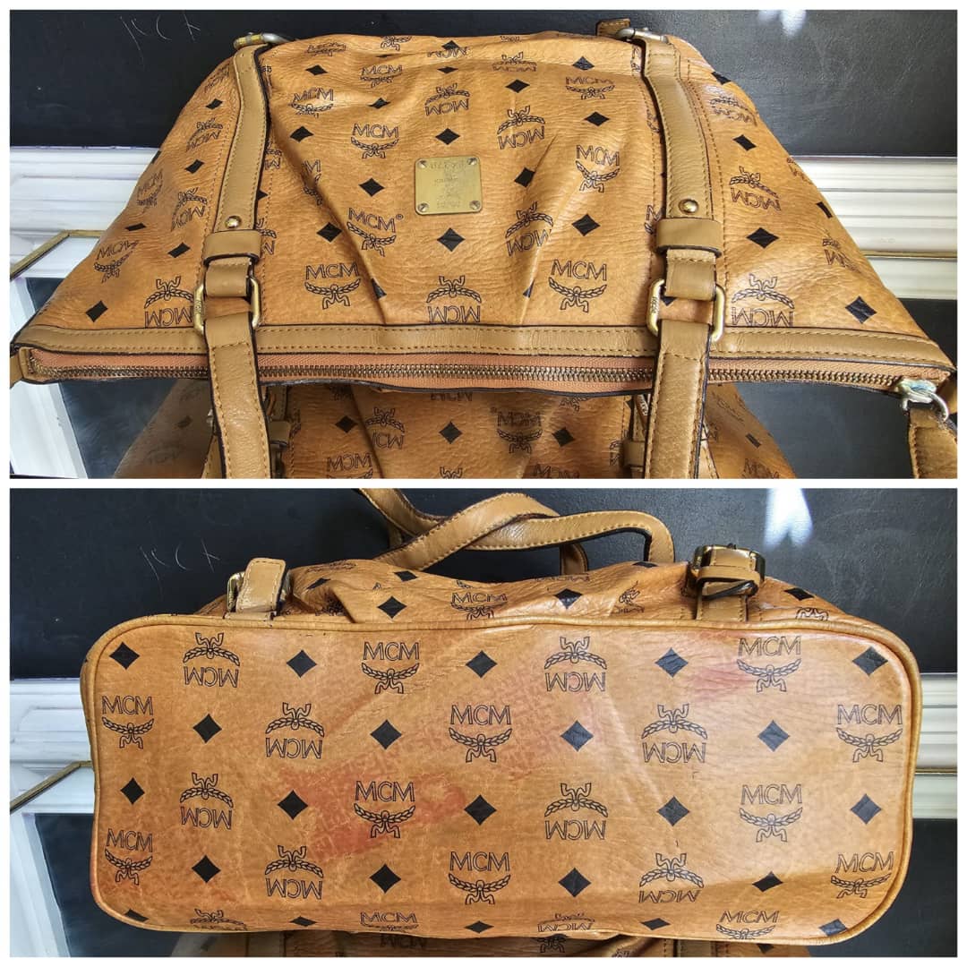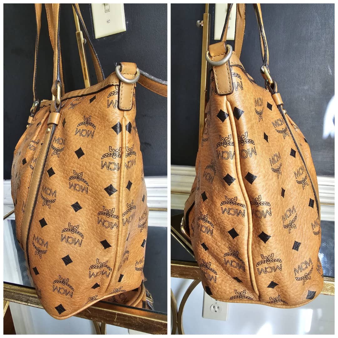 This authentic MCM Visetos PVC Handbag/Shoulder Bag Brown is in it’s good pre-owned condition. The exterior leather is clean and beautiful. The base edge shows a little bit of red color transfer stain which is not obvious. Interior is clean but has a little bit of not obvious make-up stain (Kindly review pictures above). Gold hardware with little scratches. Good condition. No long strap.