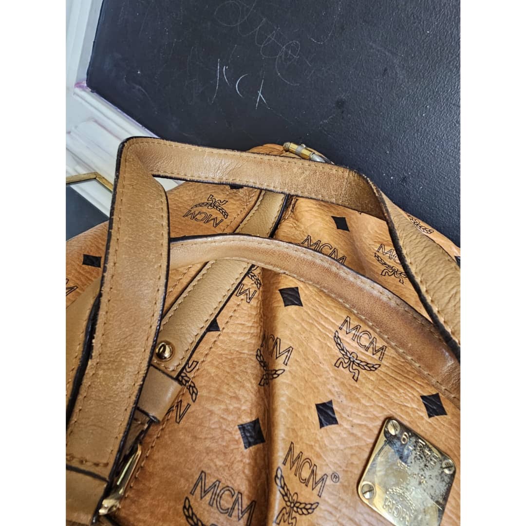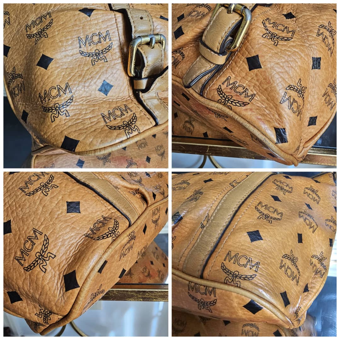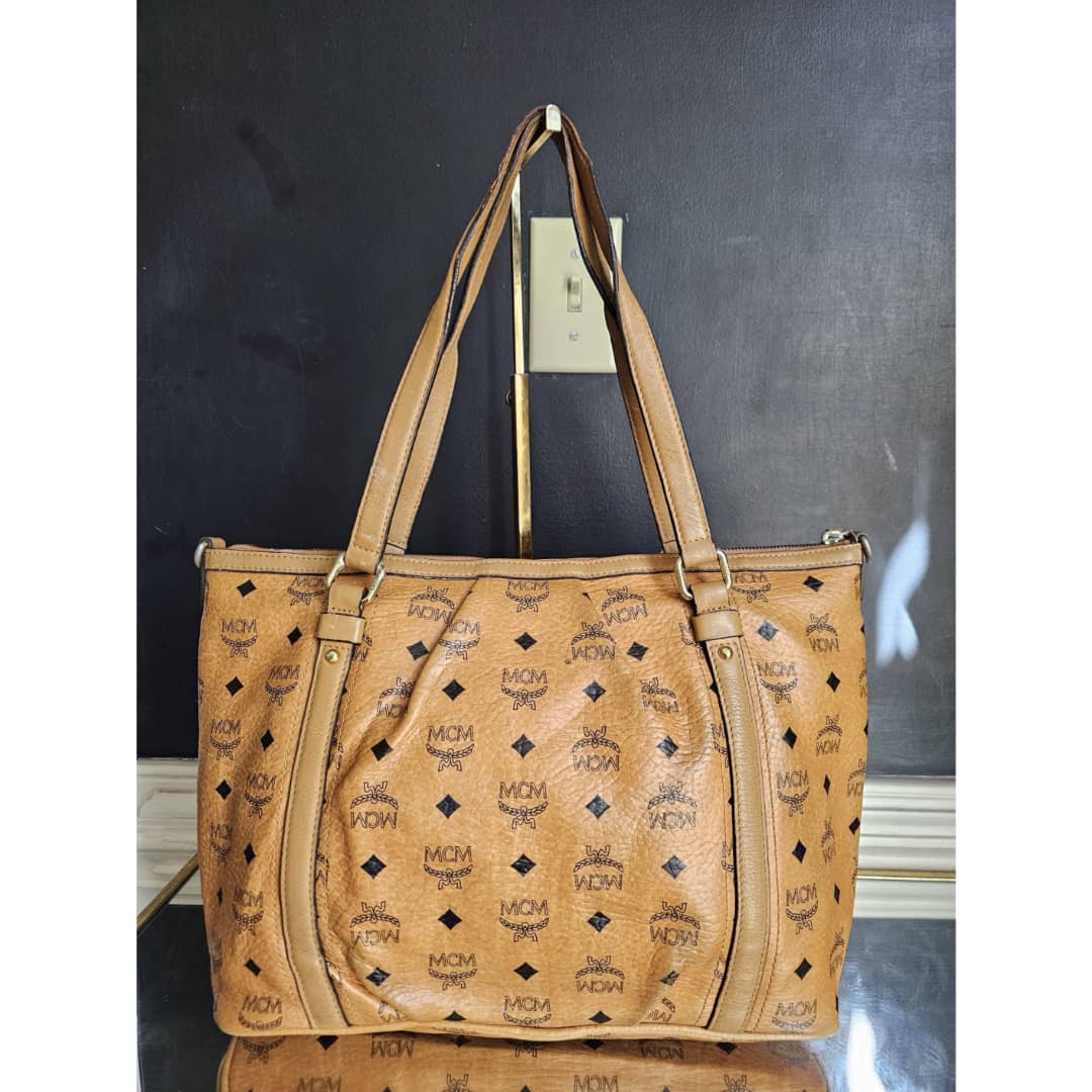 This authentic MCM Visetos PVC Handbag/Shoulder Bag Brown is in it’s good pre-owned condition. The exterior leather is clean and beautiful. The base edge shows a little bit of red color transfer stain which is not obvious. Interior is clean but has a little bit of not obvious make-up stain (Kindly review pictures above). Gold hardware with little scratches. Good condition. No long strap.