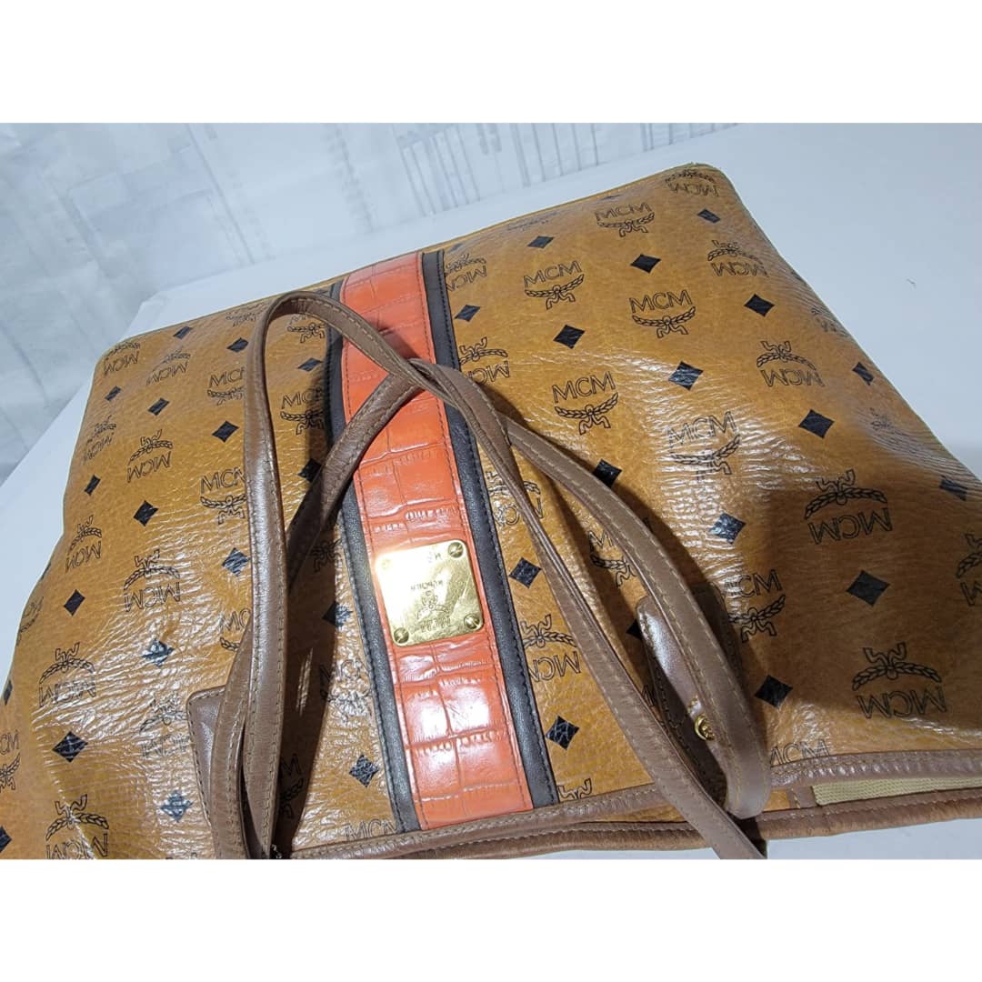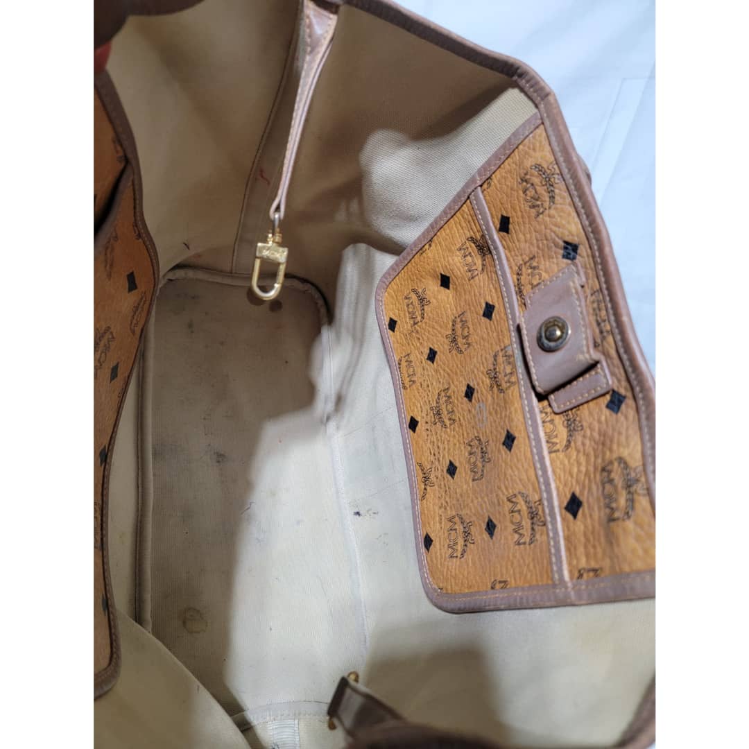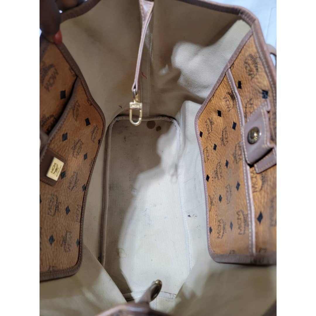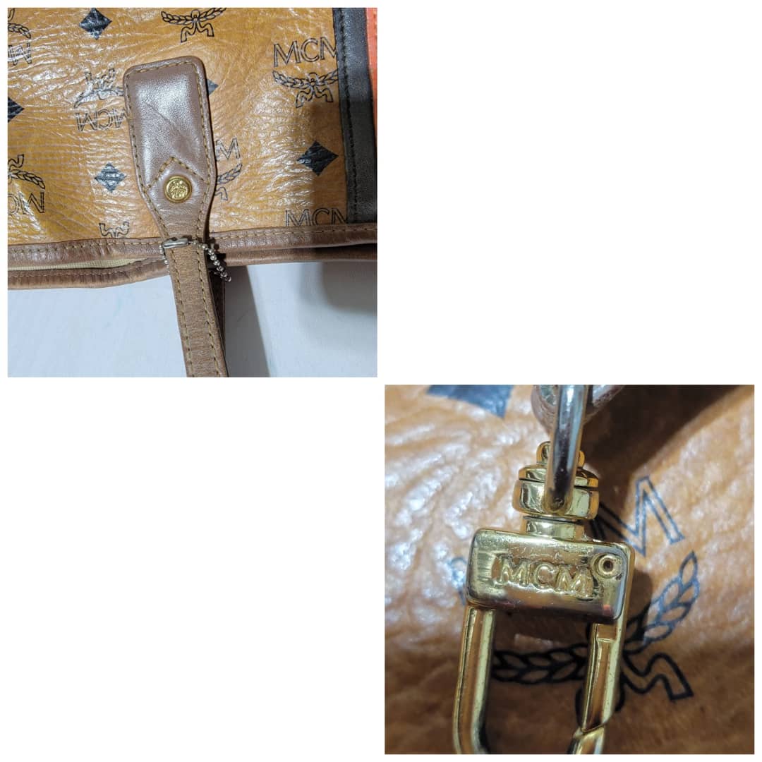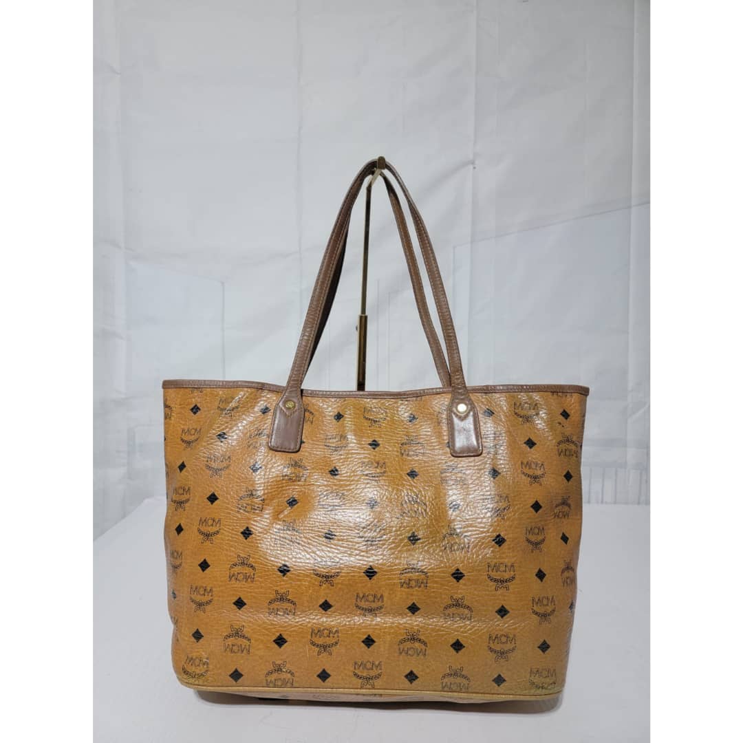 This authentic MCM TOP ZIP SHOPPER BAG COGNAC STRIPE SHOULDER BAG is in it’s good pre-owned condition. The exterior cognac leather is clean and beautiful. The sides of the bag shows very little slight discoloration, it is not obvious (Kindly look at pictures above). The leather trim that runs across the bag and handles shows scratches. The base edges shows scratches. Interior is clean. Gold hardware.