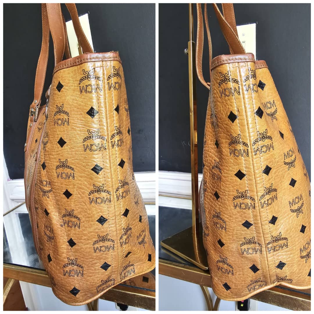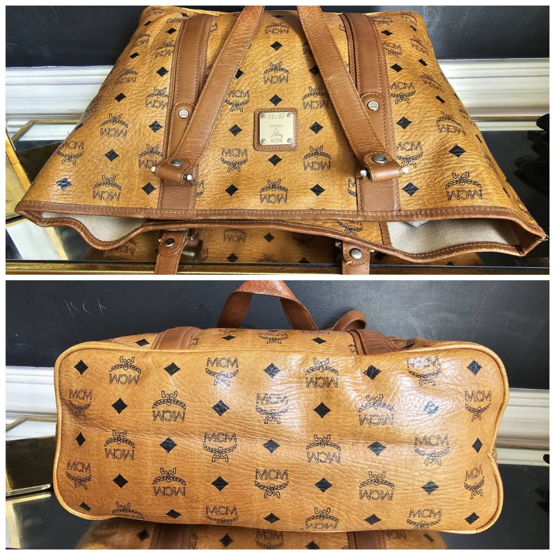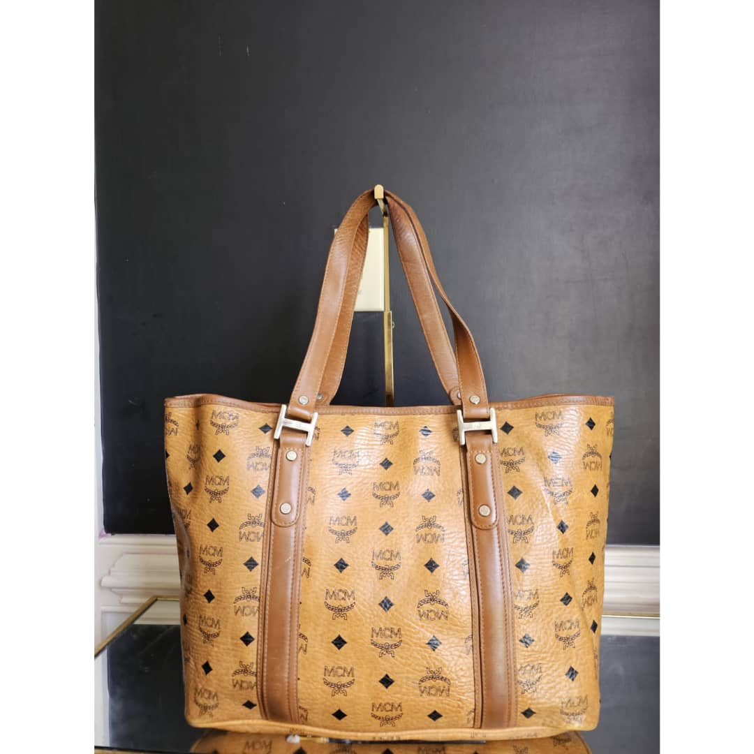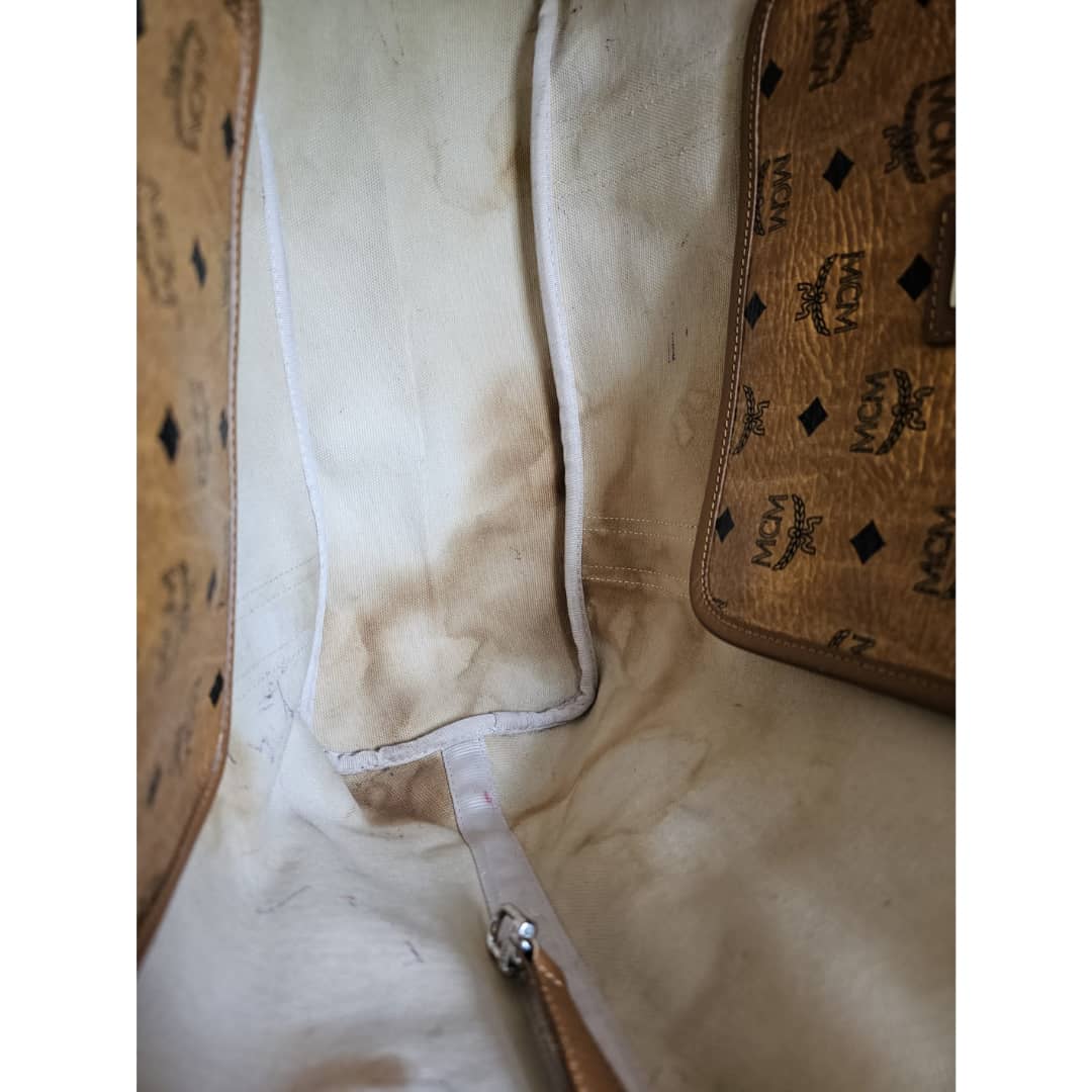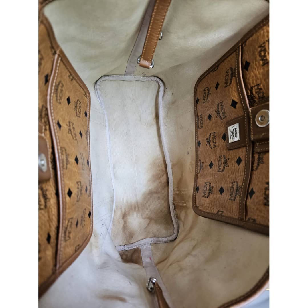 This authentic Mcm Visetos Shopper Tote Cognac is in it’s good pre-owned condition. The exterior leather is clean and beautiful. Interior is clean, shows watermarks at the corner of the bag (Kindly review pictures above). Silver hardware. A bag organizer will be added to cover the interior.