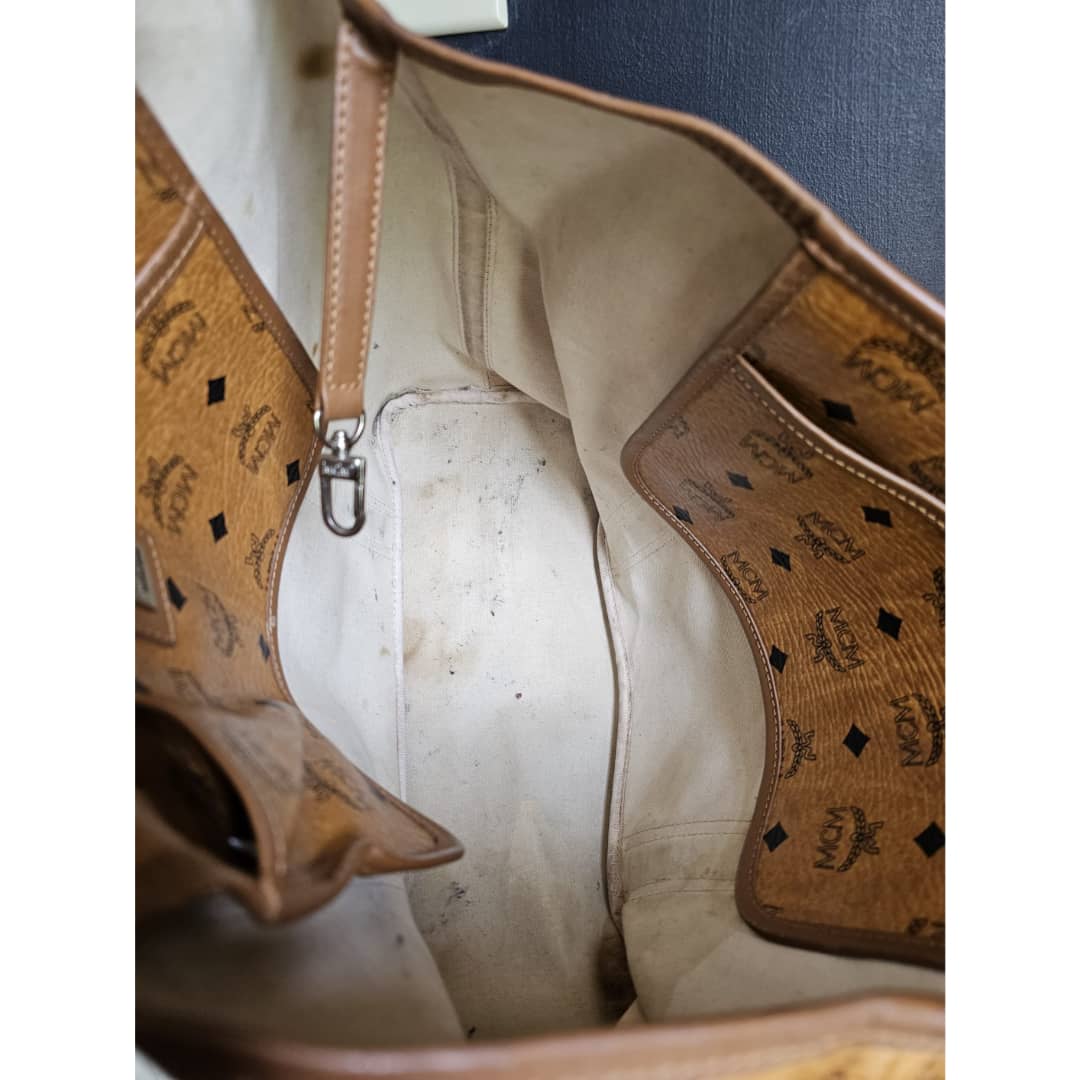 This authentic Mcm Visetos Shopper Tote Cognac is in it’s good pre-owned condition. The exterior leather is clean and beautiful. Interior is clean, shows dotted stains in the bag (Kindly review pictures above). Silver hardware.
