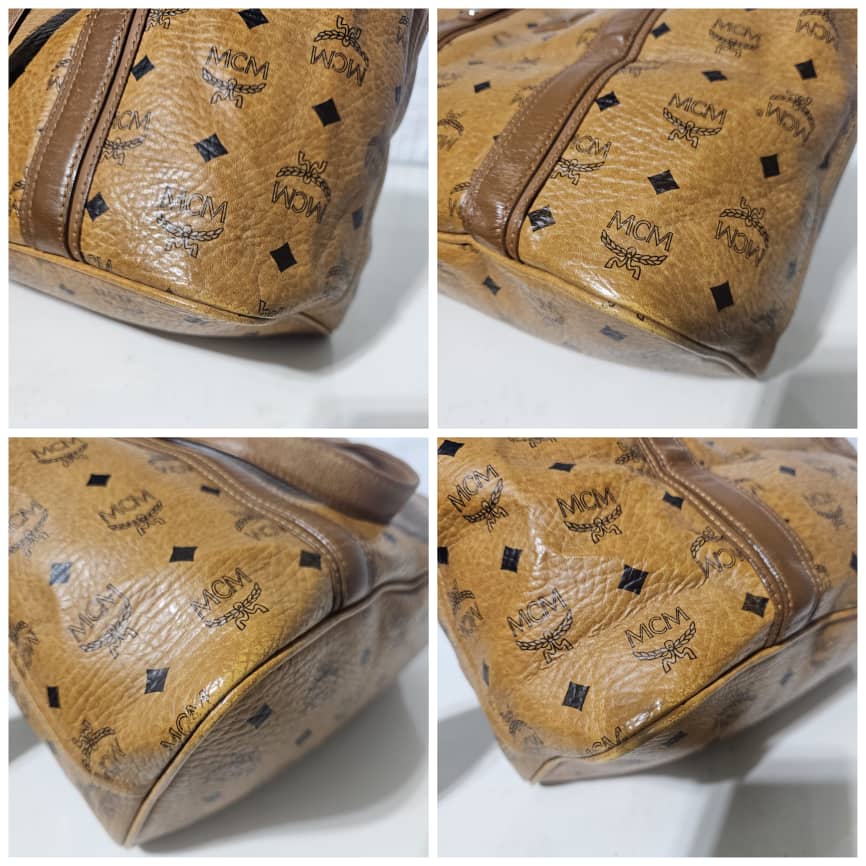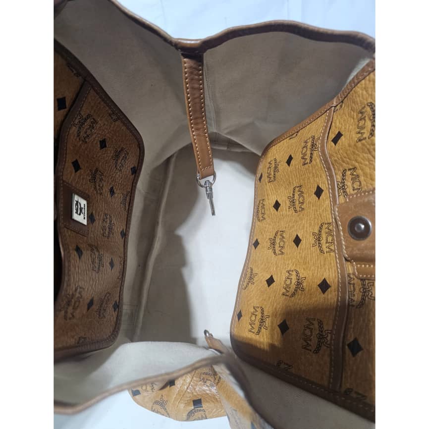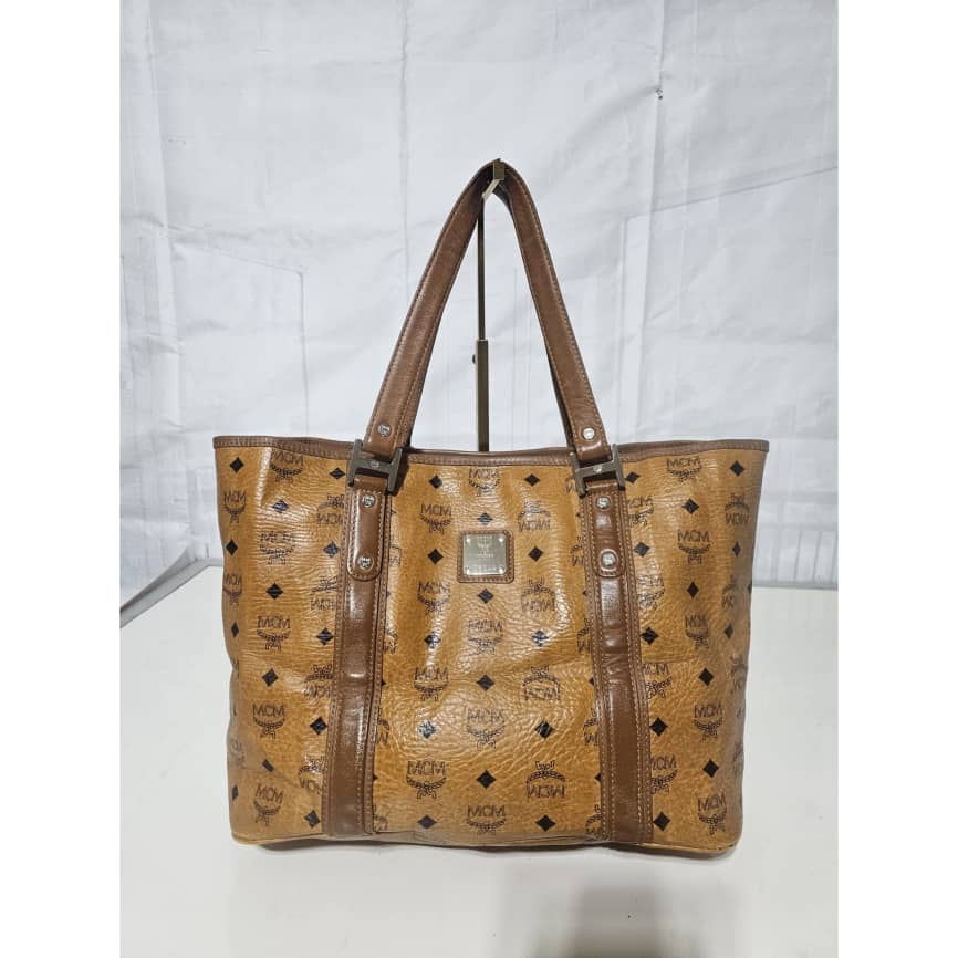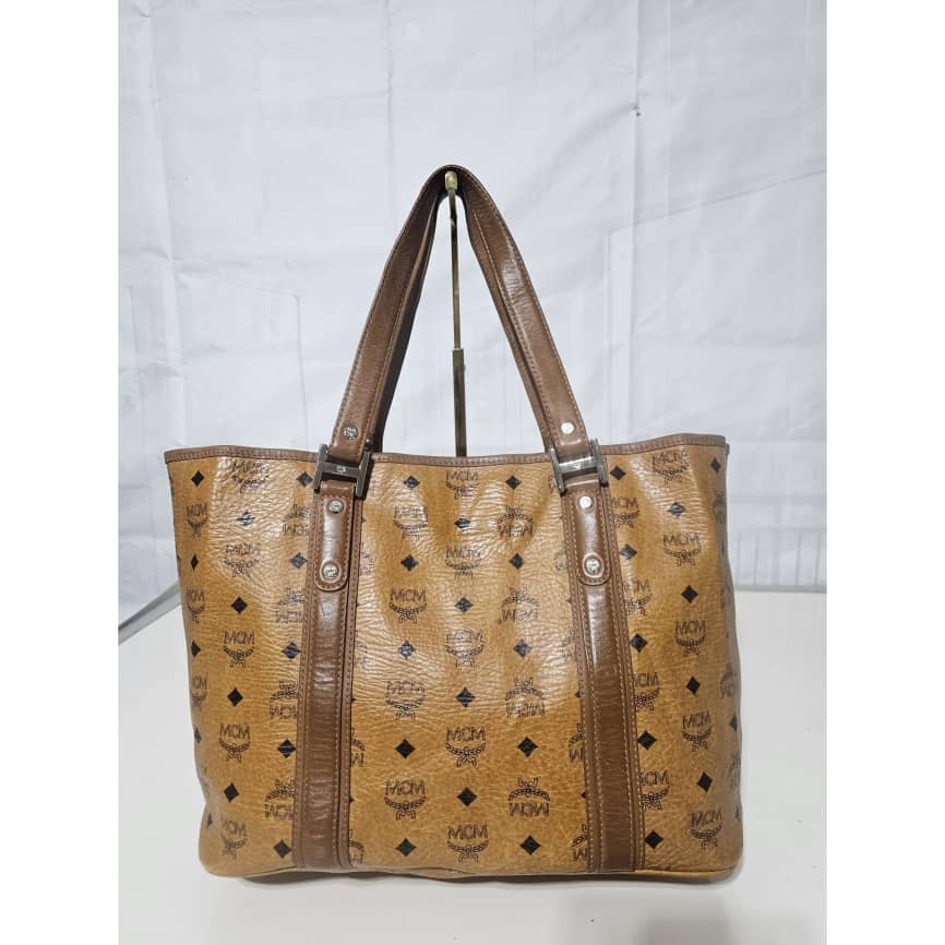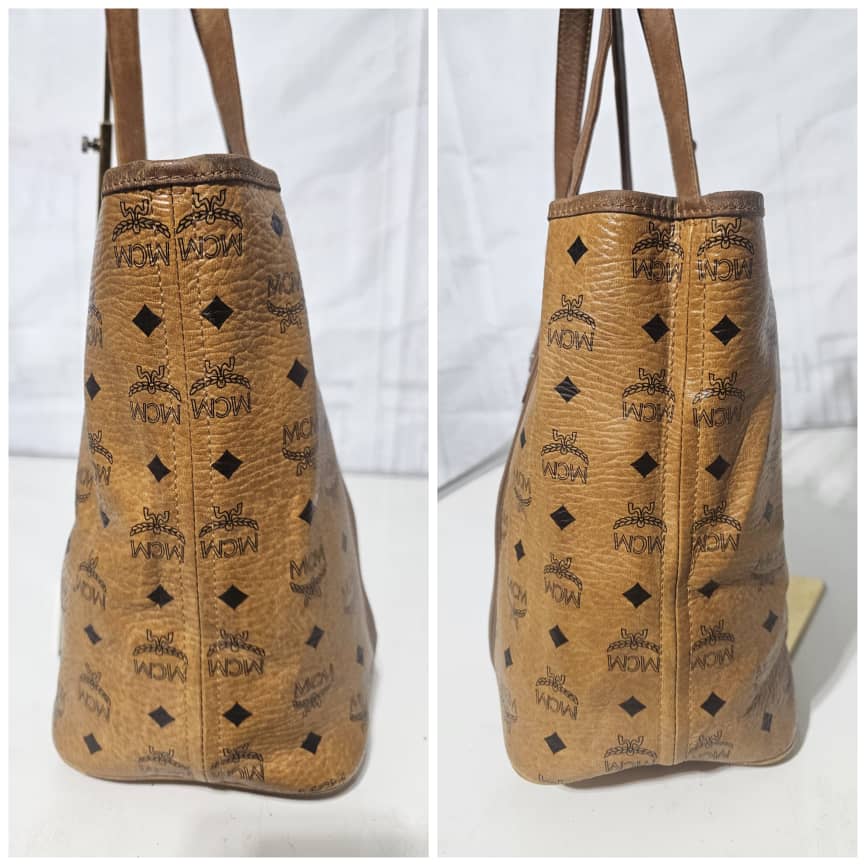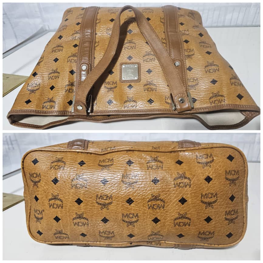 This authentic Mcm Visetos Shopper Tote Cognac is in it’s good pre-owned condition. The exterior leather is clean. Interior is clean. Little scratches on the brown leather trim that runs through the bag. Silver hardware.