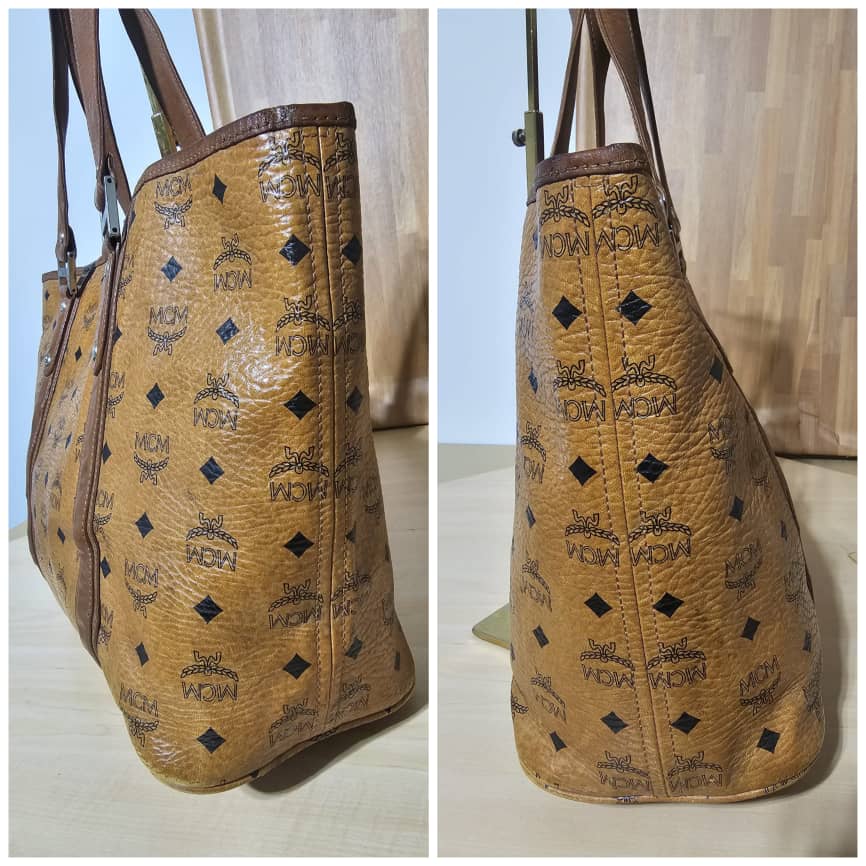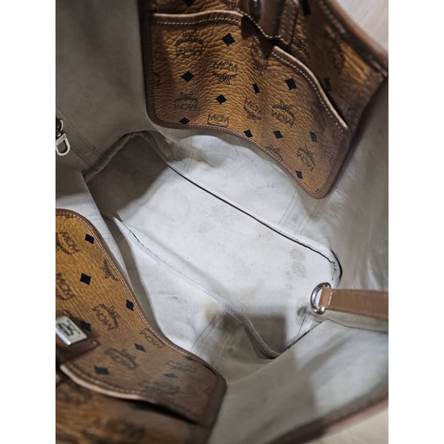 This authentic MCM Visetos Shopping Tote Cognac Bag is in it’s good pre-owned condition. The exterior is clean and beautiful with little rubbing at the edge (Kindly refer to pictures above). The interior is clean with little water mark stains at the corner. Silver hardware