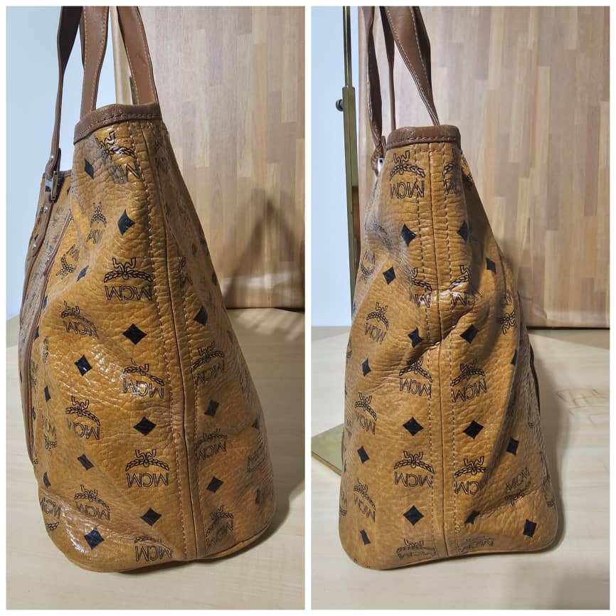 This authentic MCM Visetos Shopping Tote Cognac Bag is in it’s good pre-owned condition. The exterior is clean and beautiful. The interior shows little coffe water mark stains at the [kindly review pictures]. Silver hardware.