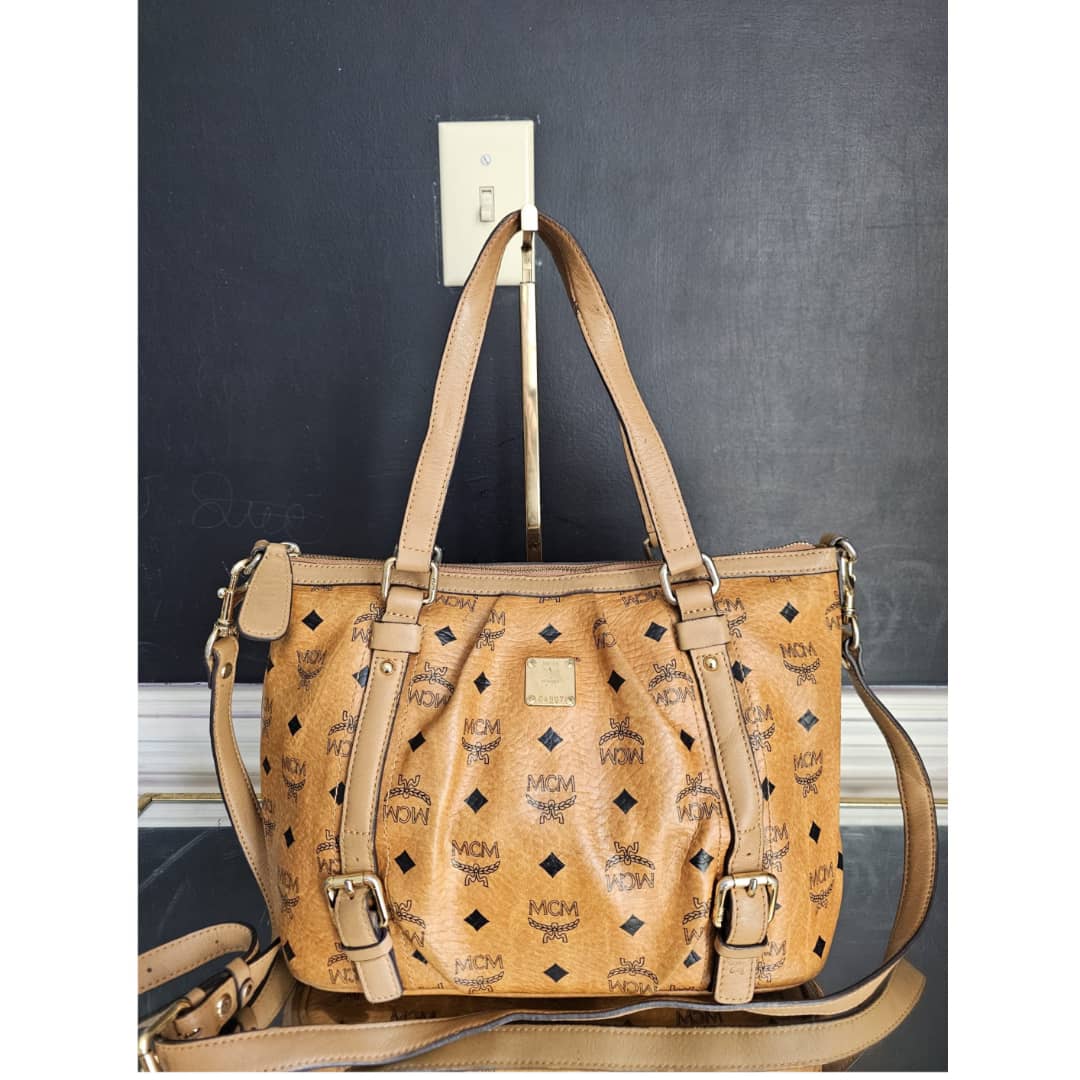 This authentic MCM Visetos Small PVC Cognac Leather Brown is in it’s good pre-owned condition. The exterior leather is clean and beautiful. Interior is clean. Gold hardware. Comes with a long strap that can be worn as a crossbody/handbag.
