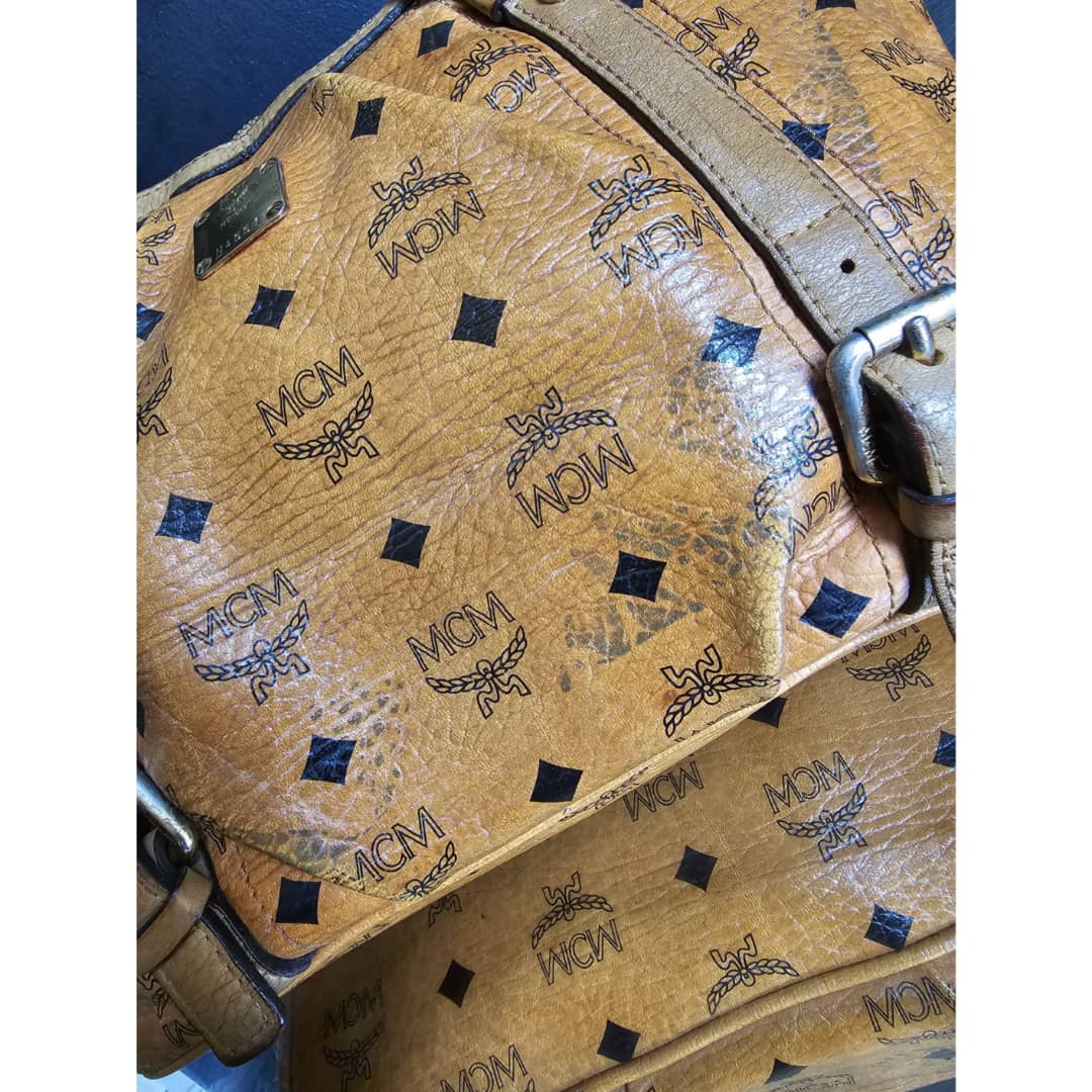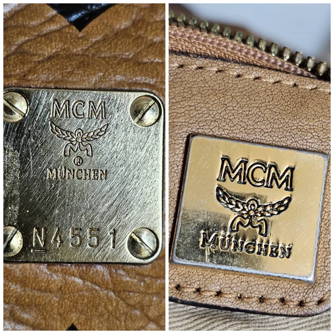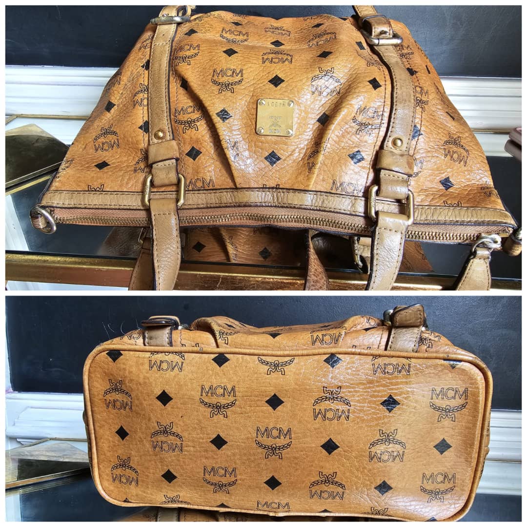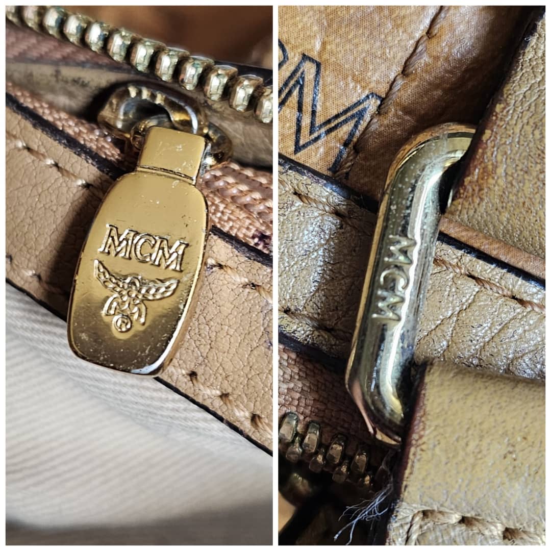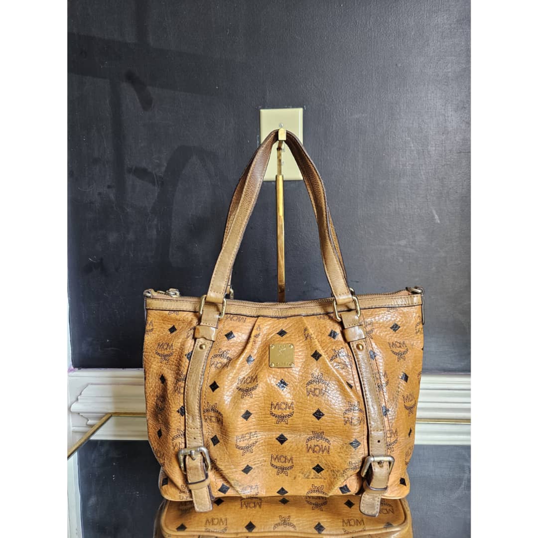 This authentic MCM Visetos Small PVC Cognac Leather Brown is in it’s good pre-owned condition. The exterior leather is clean and beautiful, the front exterior shows some stains below the bag (Kindly review pictures above). Interior is clean. The brown leather trim that runs across the bag shows wear. Handle shows little rubbing and wear. Gold hardware, shows some scratches. No long strap.