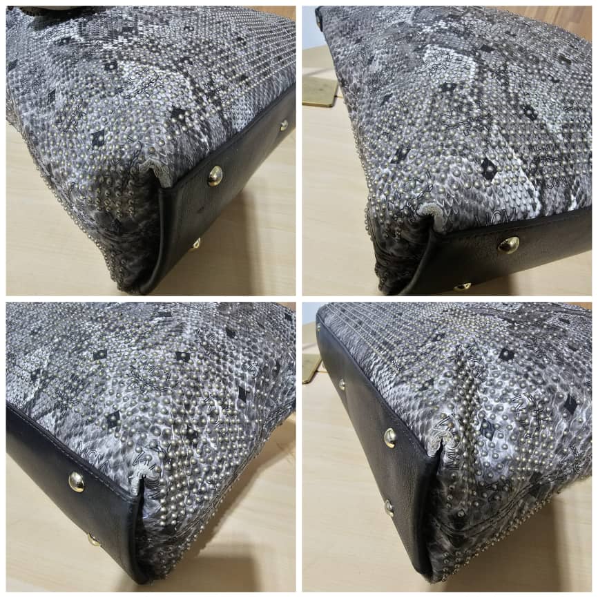 This authentic MCM Visetos Studded Tote in Grey Black Bag is in it’s good pre-owned condition. The interior is clean, the exterior is clean and beautiful. It comes with a door key chain.
