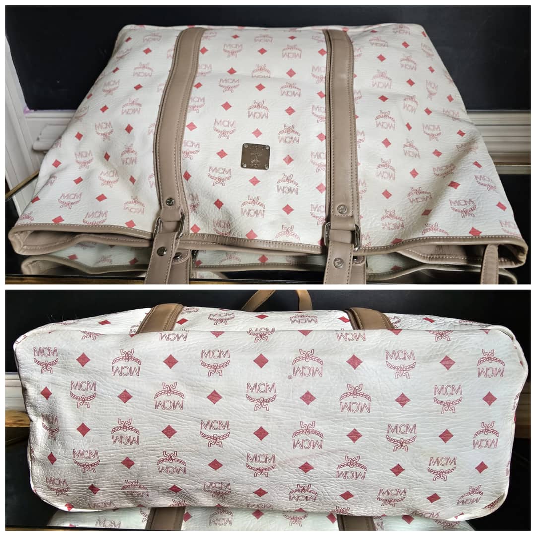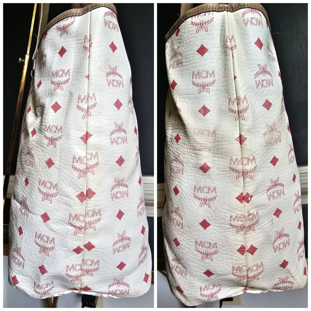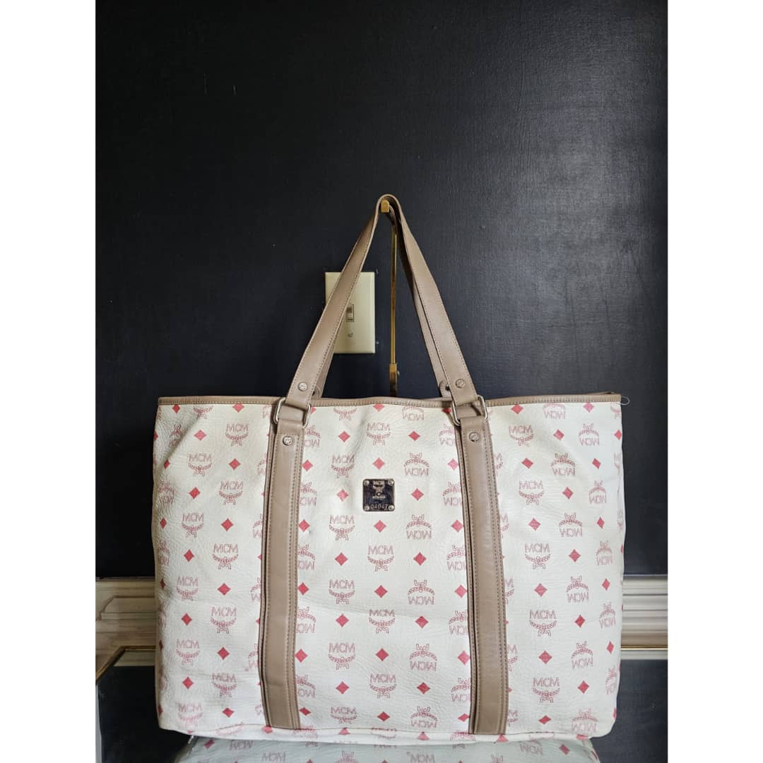 This authentic MCM XL Visetos Leather Trimmed Tote Bag Off-White Pink is in it’s good pre-owned condition. The exterior leather is clean and beautiful, shows little pink color wear on the exterior back (Kindly review pictures above). Interior is clean, shows sign of use. Silver hardware. Very Beautiful big bag.