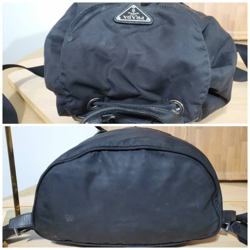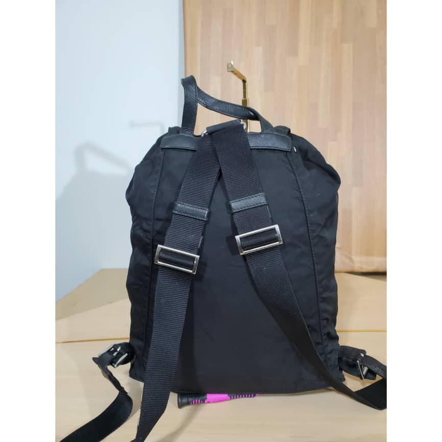 This authentic Prada Black Nylon Tessuto Backpack is in it good preowned condition. The exterior nylon is clean and beautiful. Interior is clean. Silver hardware. Has a front pocket.
