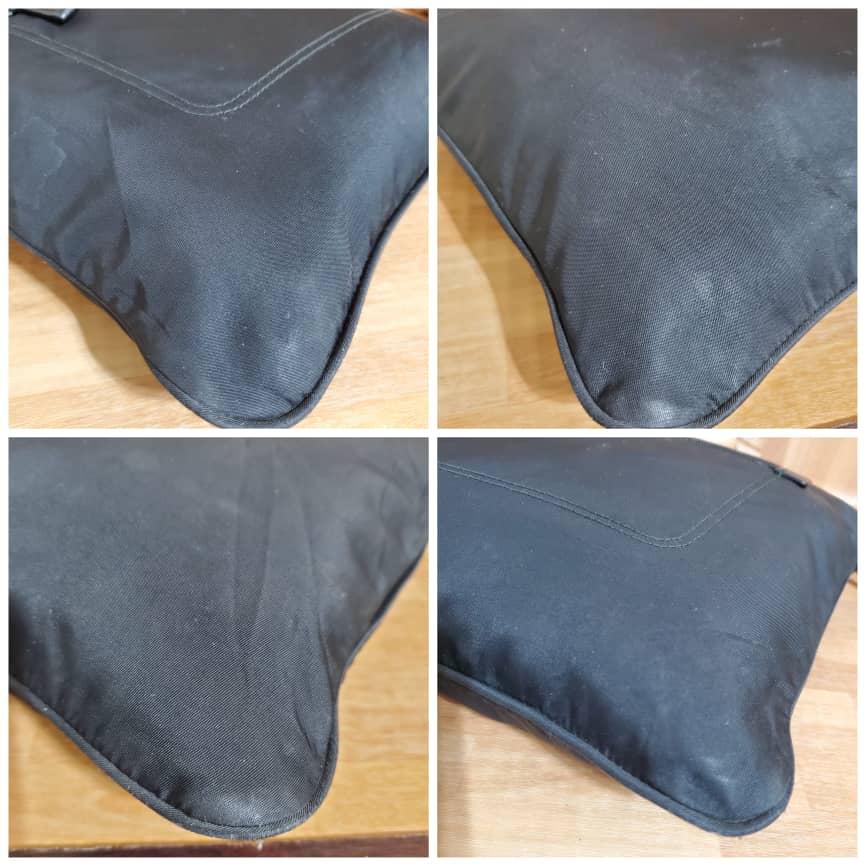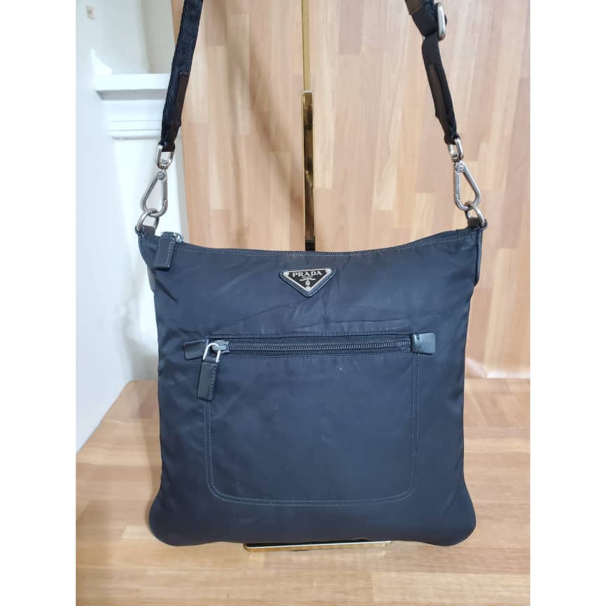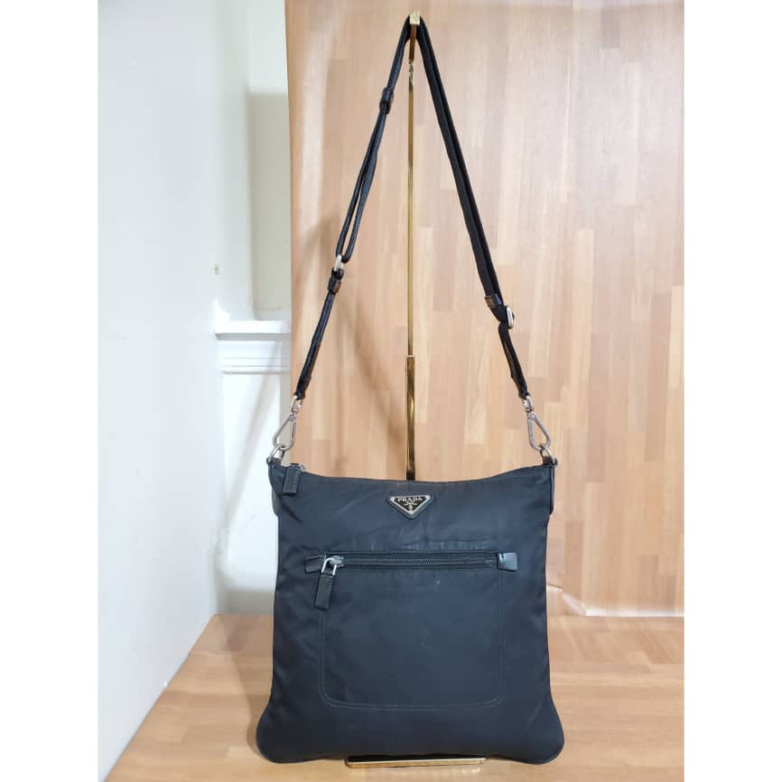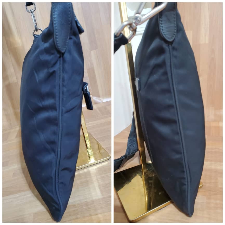 This authentic Prada Black Tessuto Nylon Messenger Crossbody Bag is in it’s good pre-owned condition. The exterior is clean and beautiful. Interior is clean.
