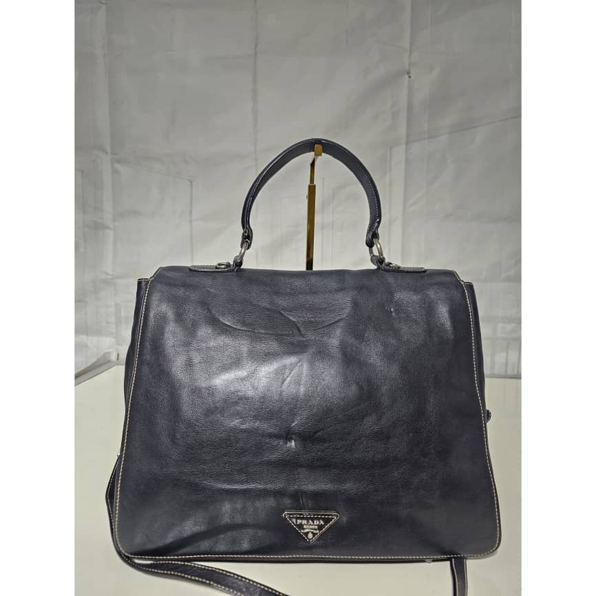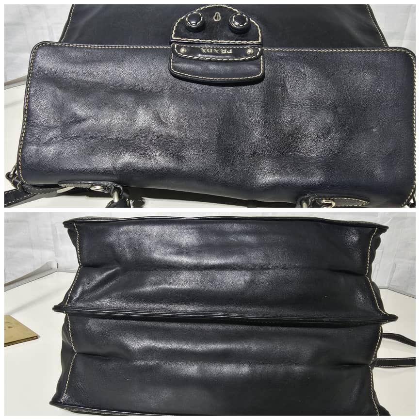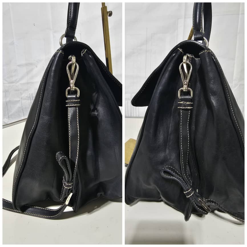 This authentic Prada Leather Madras Top Handle Black Bag is in it’s good pre-owned condition. The exterior leather is clean with little signs of indention on it. The interior is clean. It has a long crossbody strap. Silver hardware. Can be worn as top handles or shoulder or Crossbody