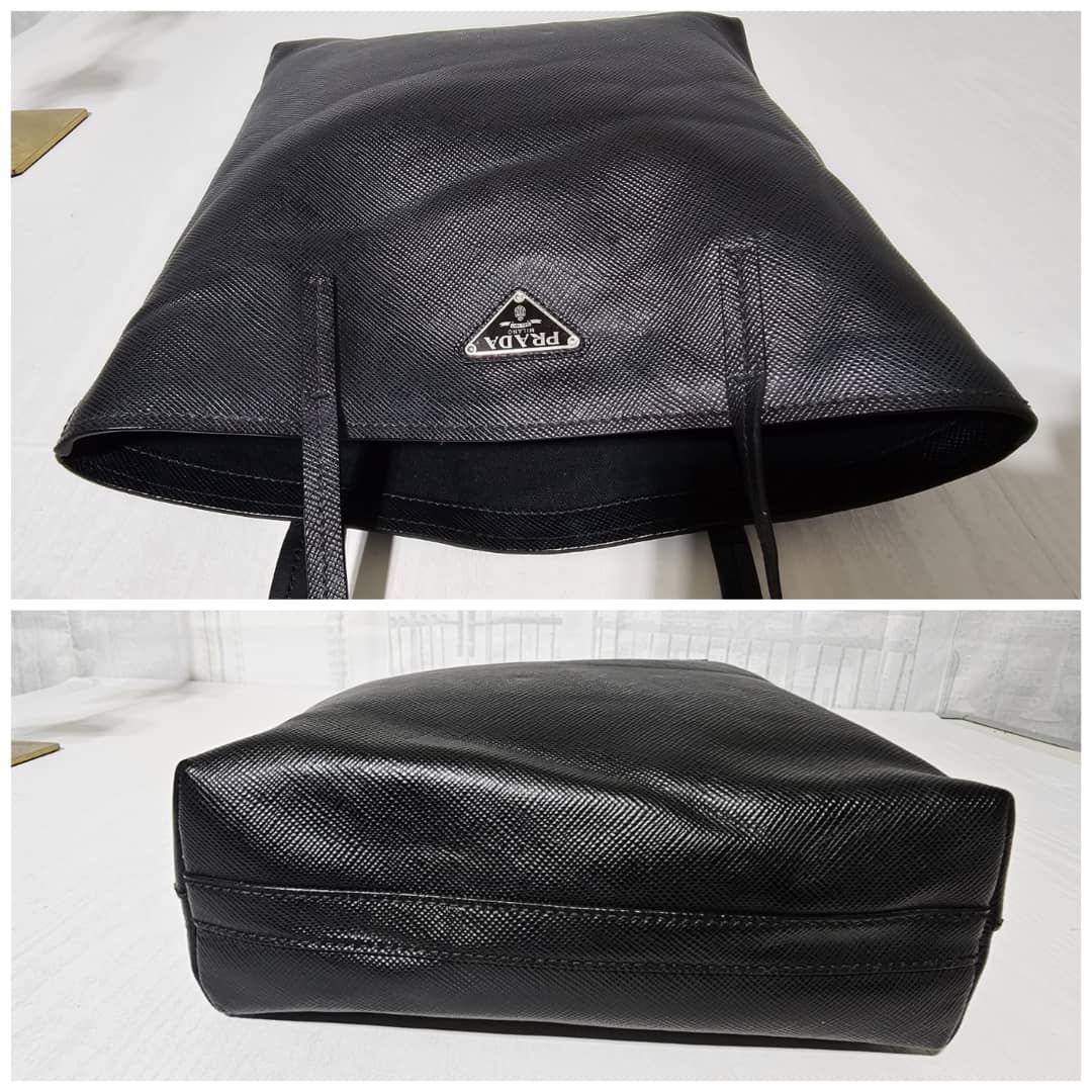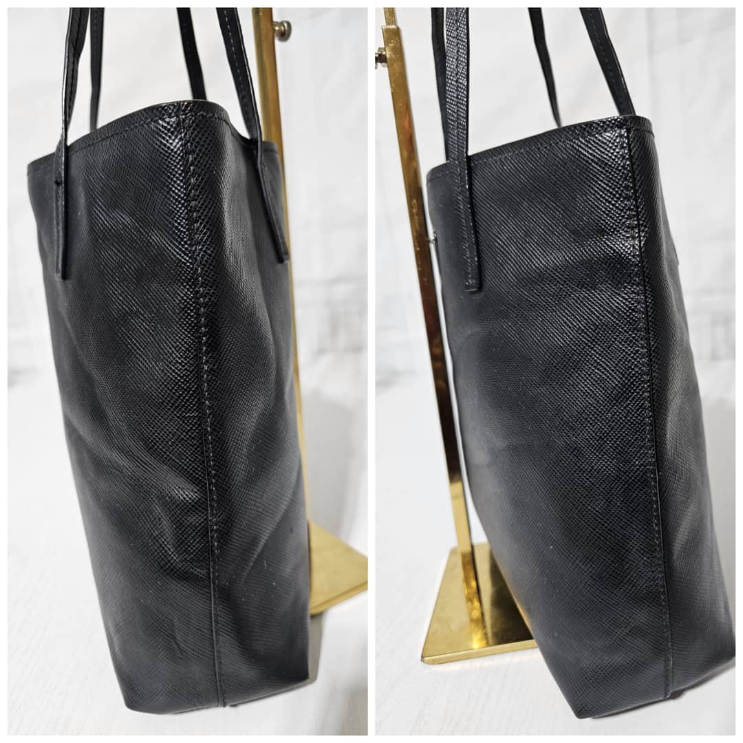 This authentic Prada logo plaque tote bag Black is in it’s good pre-owned condition. The exterior leather is clean and beautiful. Interior is clean. A very excellent bag.