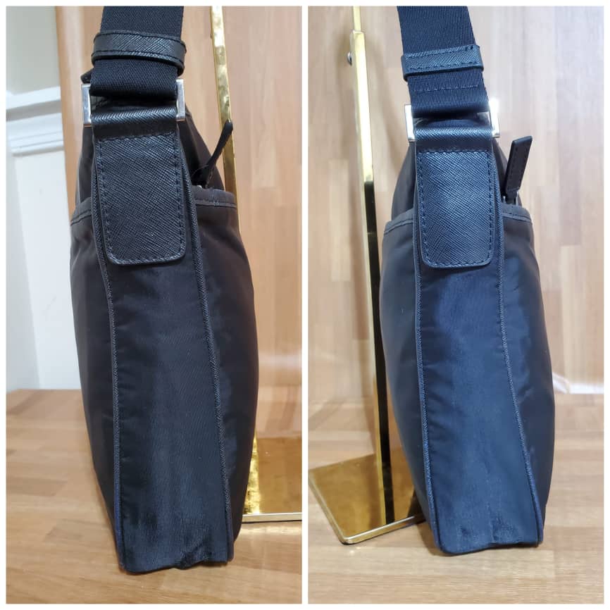 This authentic Prada Nylon Front Pocket Messenger Tessuto with Saffiano Leather Bag is in it’s pre-owned good condition. The exterior nylon is clean and beautiful. Interior is clean. Great Crossbody Bag for an everyday use.