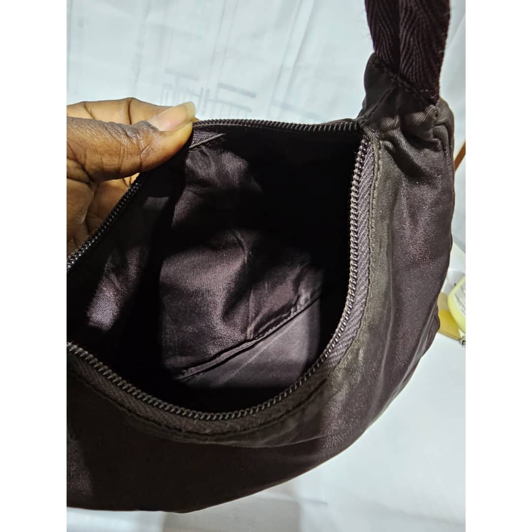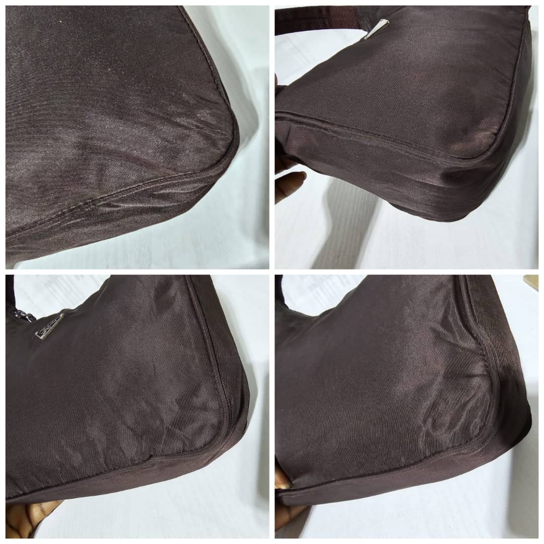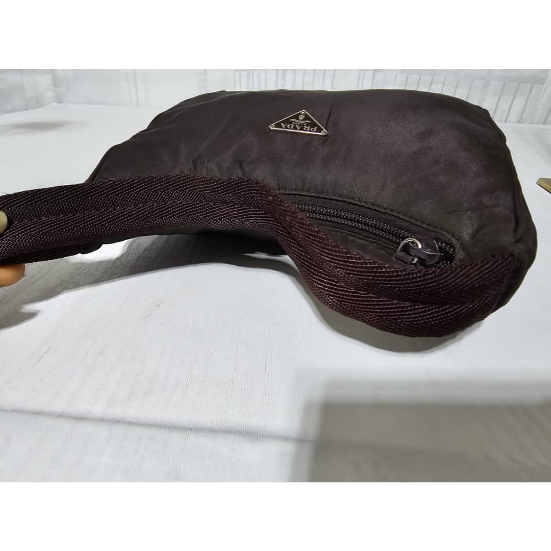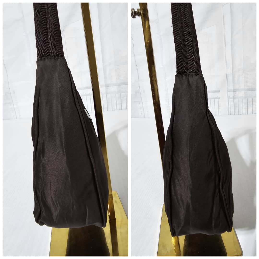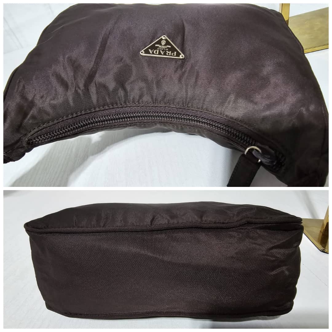 This authentic Prada Nylon Tessuto Sport Shoulder Bag Deep Brown is in it’s good pre-owned condition. The exterior nylon is clean and beautiful. Interior is clean. Silver hardware. Kindly look at pictures closely.