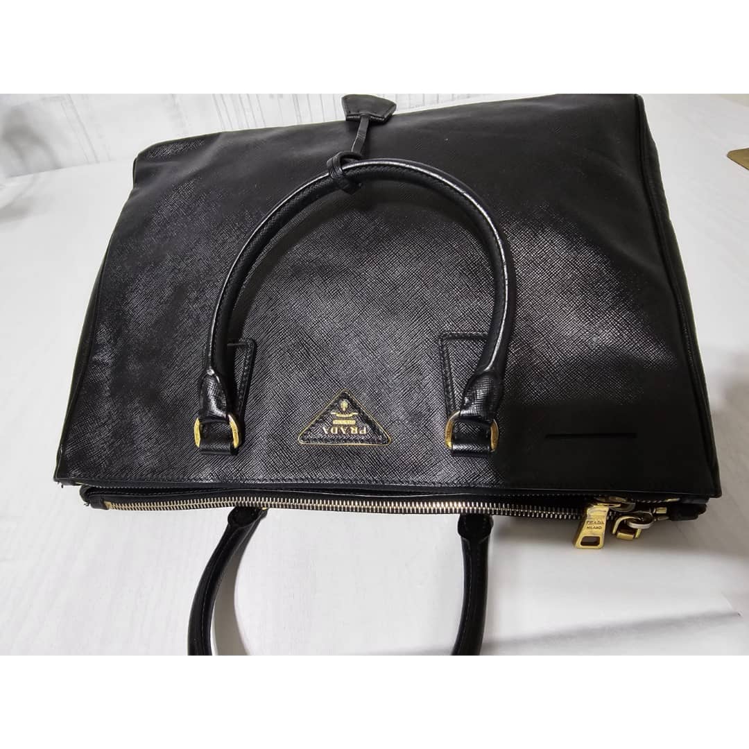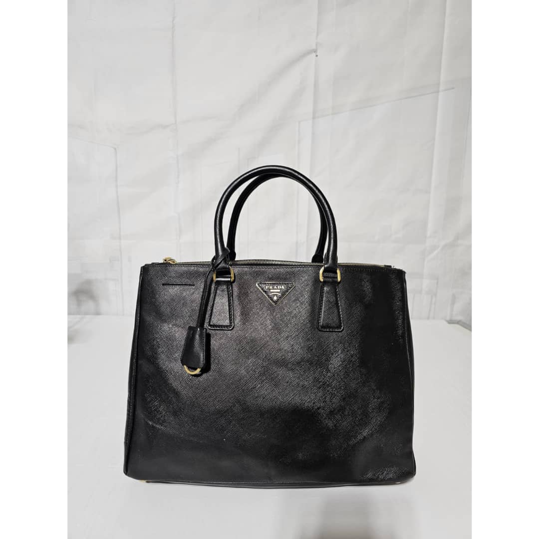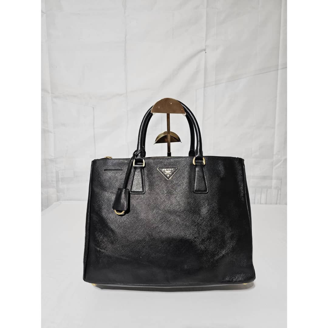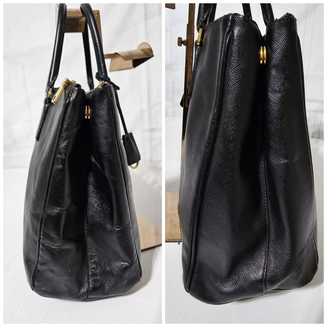 This authentic Prada Saffiano Lux Leather Double Zip Tote Bag Black is in it’s good pre-owned condition. The exterior leather is clean and beautiful. Interior is clean. It comes with a key charm. Gold hardware, shows some scratches. Bag is in good condition.