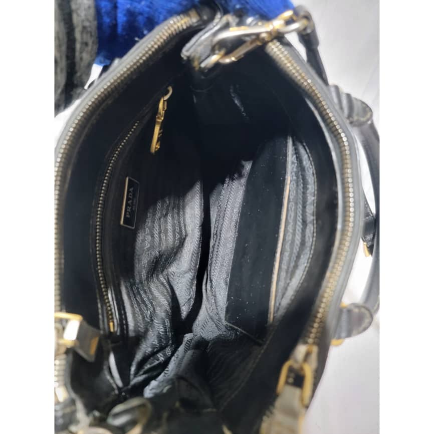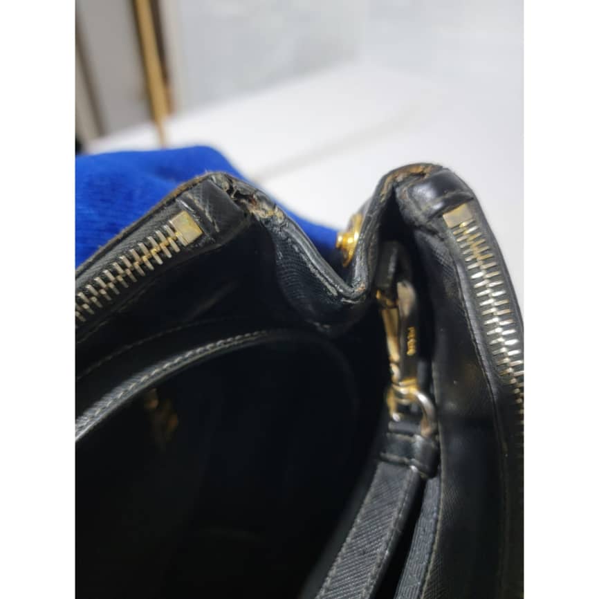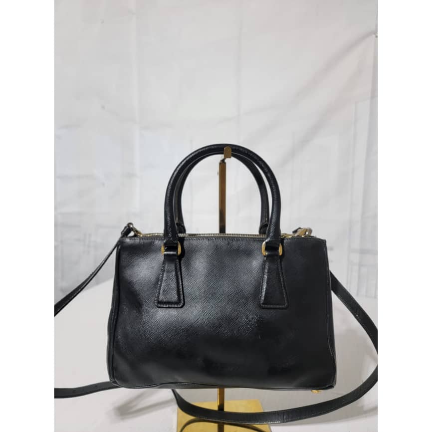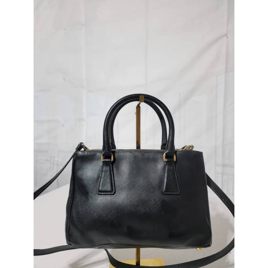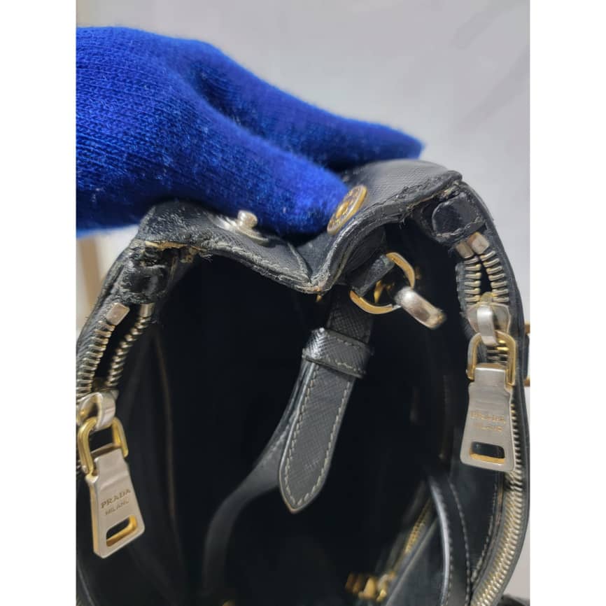 This authentic PRADA Saffiano Vernice Mini Galleria Double Zip Tote Black is in it’s pre-owned condition. The exterior is clean. Interior is clean. The top trim shows some scratches to it. The gold hardware shows some rubbing and scratches to it. The edges shows some scratches to it.