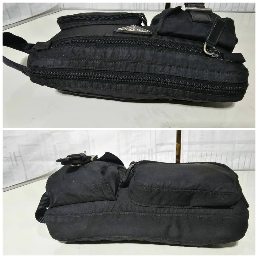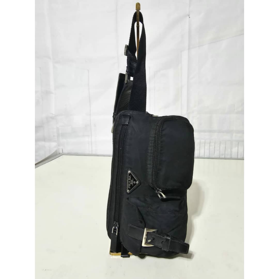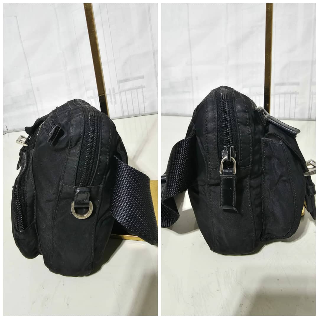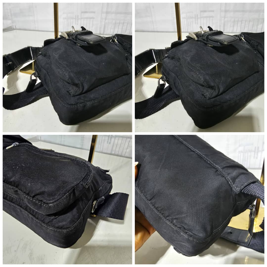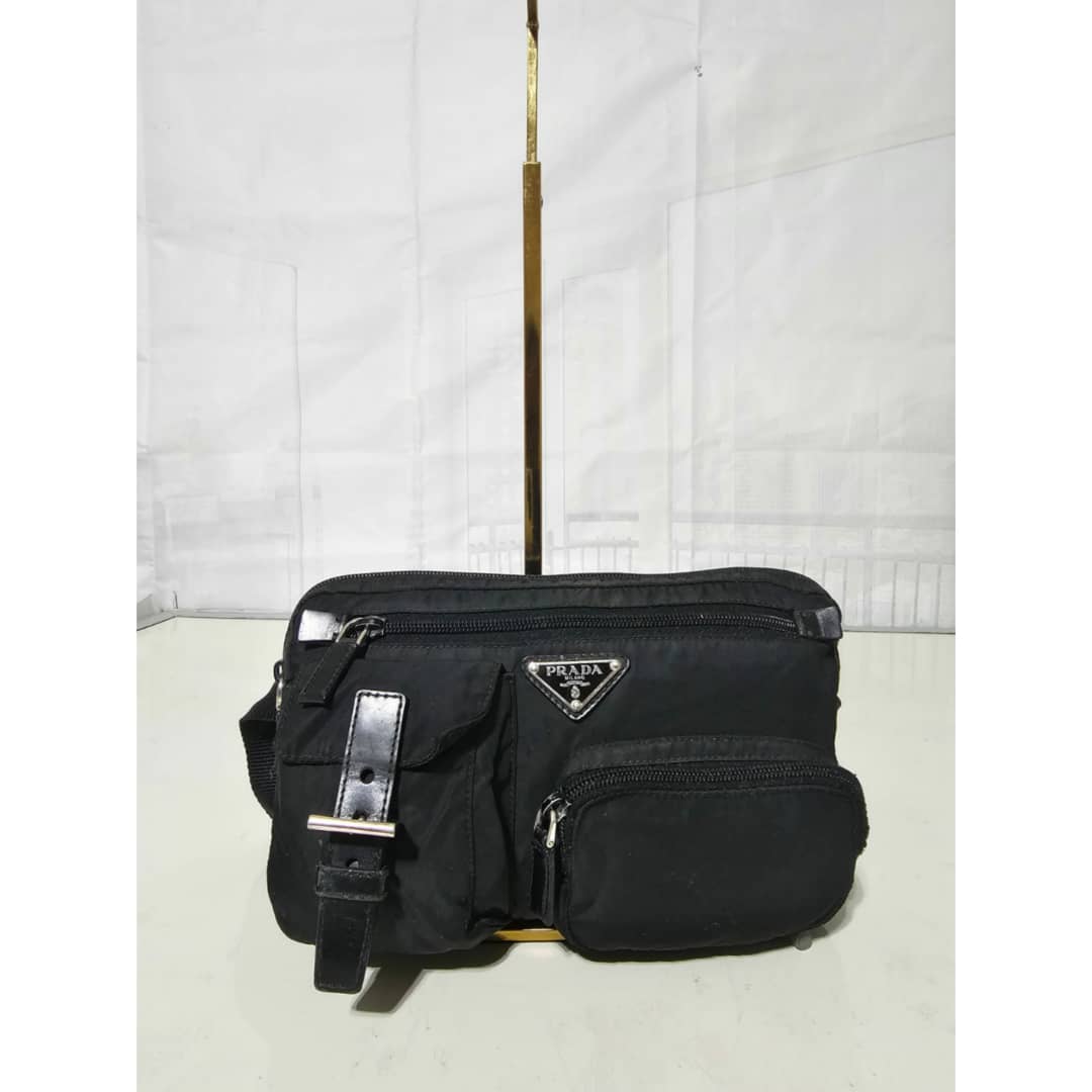 This authentic Prada Tessuto Belt Bag Black is in it’s good pre-owned condition. The exterior is clean and beautiful. Interior is clean. Silver hardware. It can be worn as a waist bag, across the shoulder bag or on the shoulder bag.