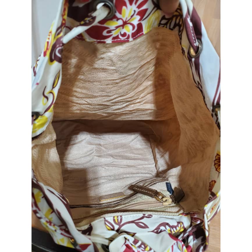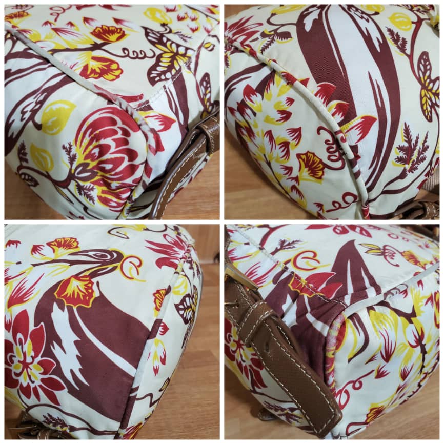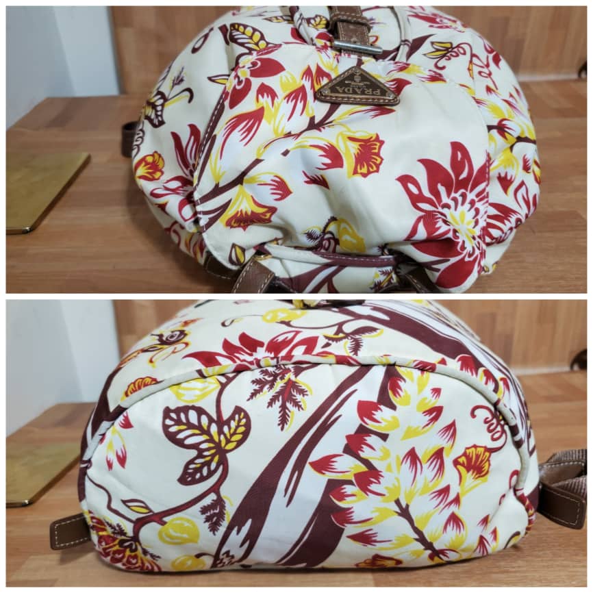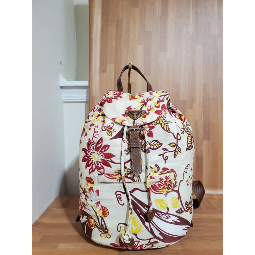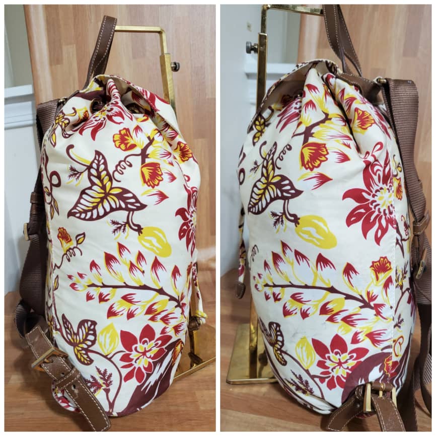 This authentic Prada Vintage Single Front Pocket Printed Tessuto Backpack it’s in it’s pre-owned good condition. Has sign of use. The exterior printed nylon is in it’s pre-owned good condition. Interior is clean.