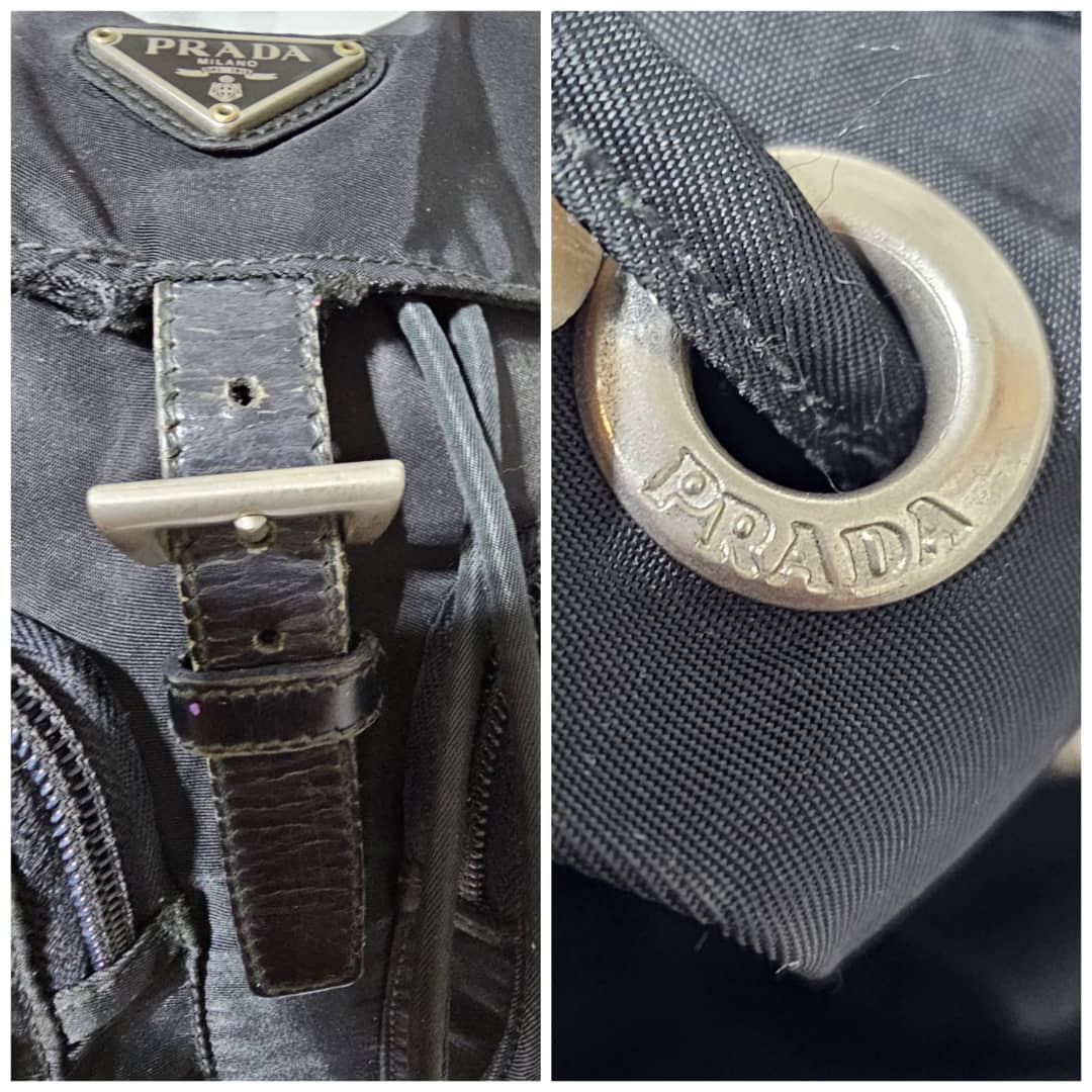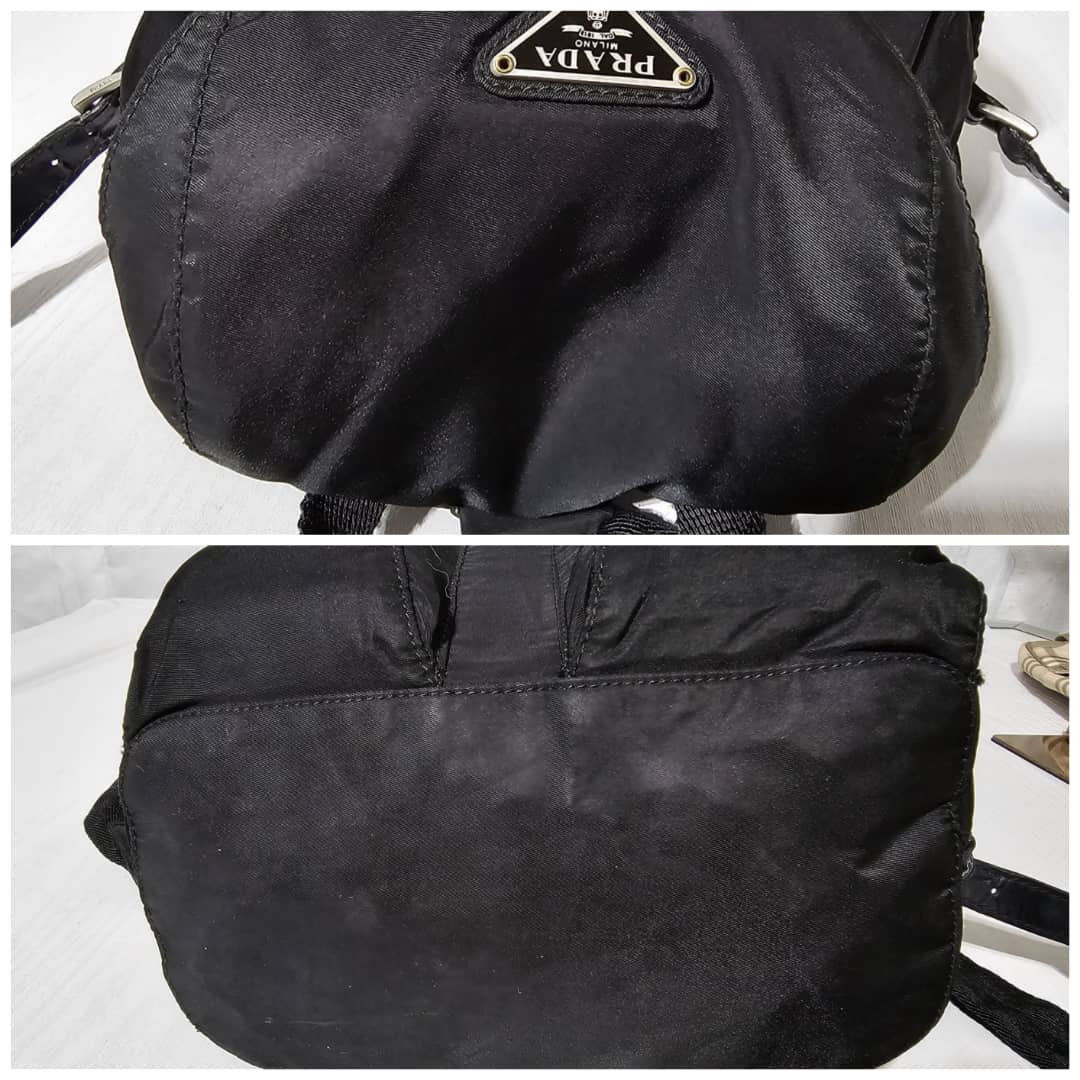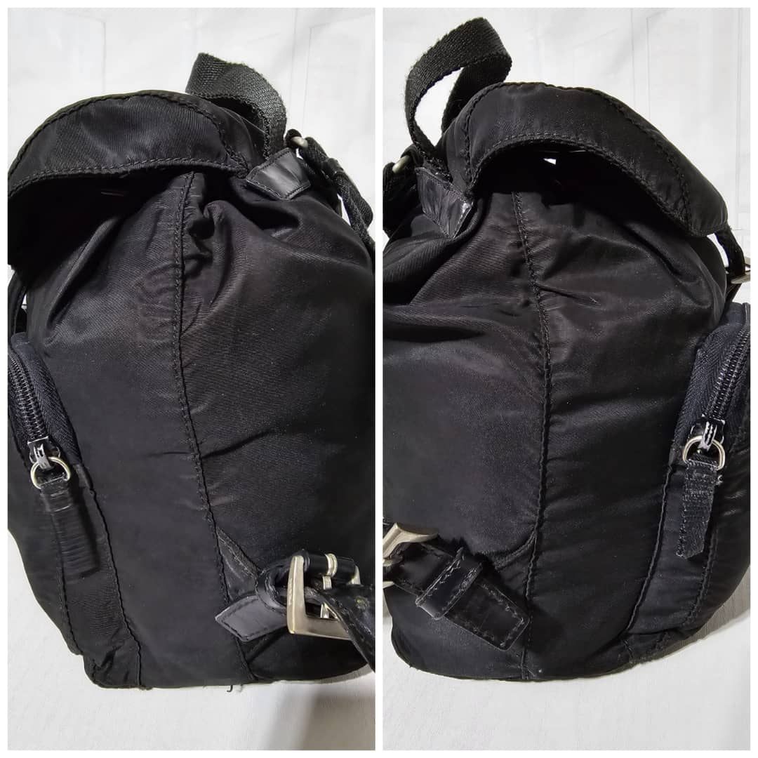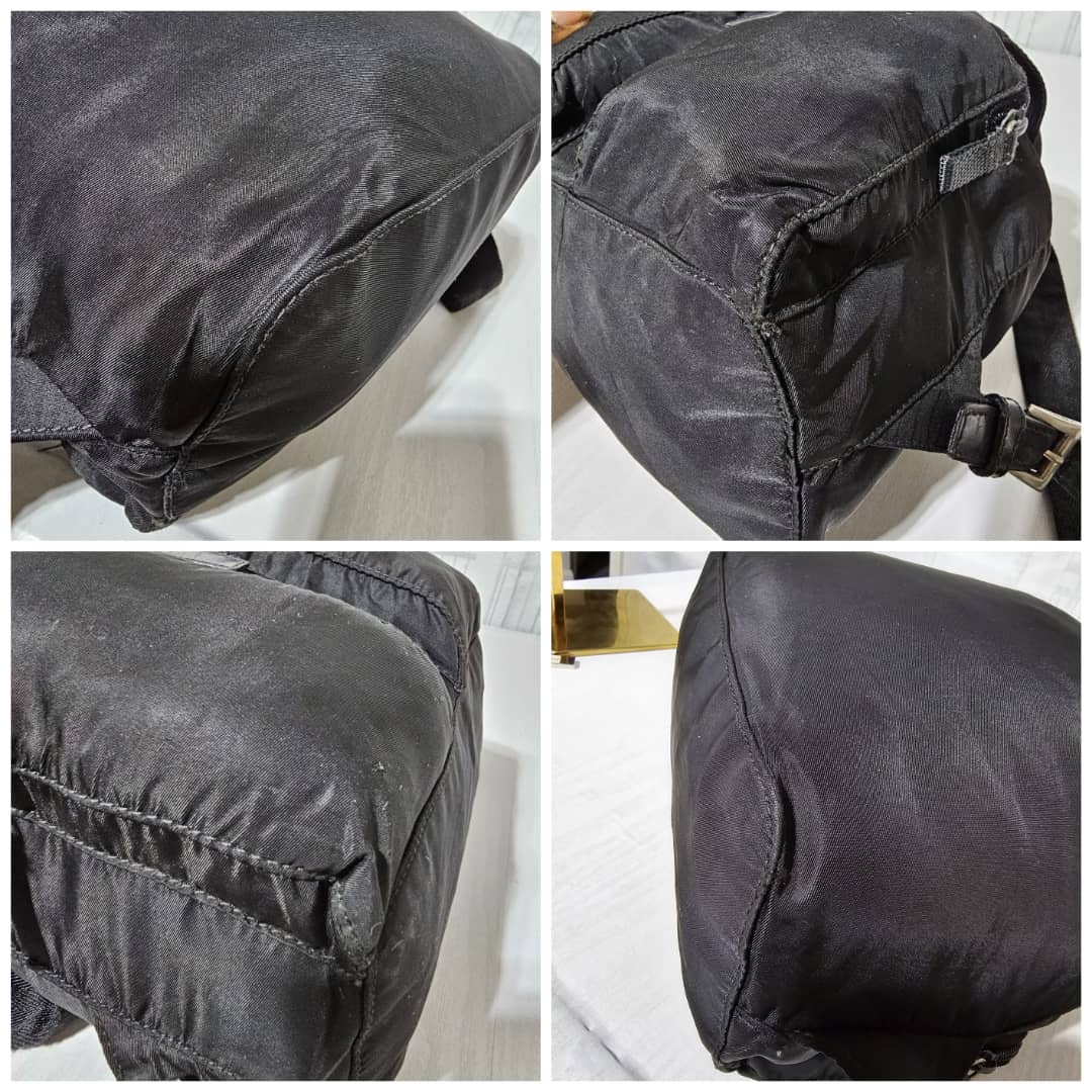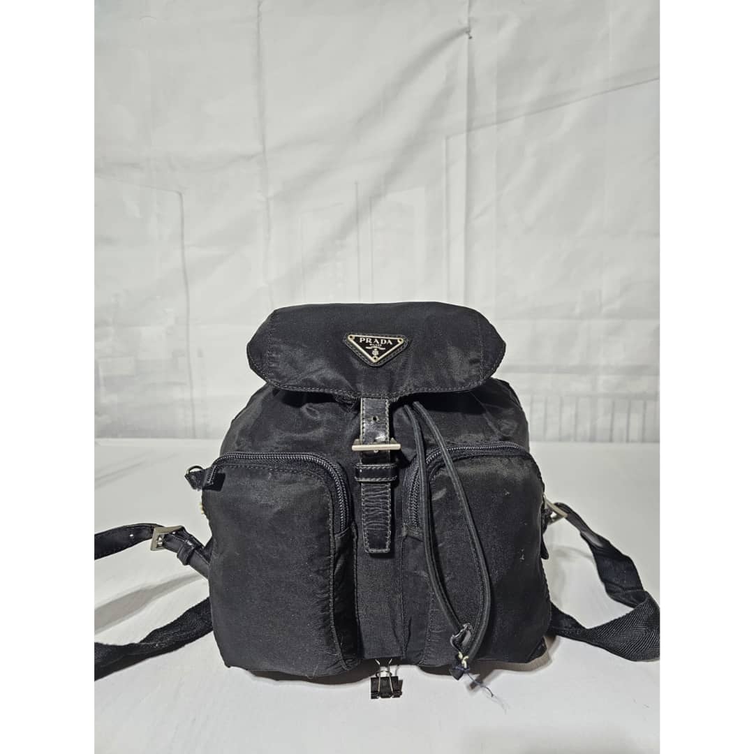 This authentic PRADA Vintage Tessuto Nylon Small Backpack Black is in it’s good pre-owned condition. The exterior nylon is clean and beautiful. Interior is clean. Silver hardware shows some scratches.