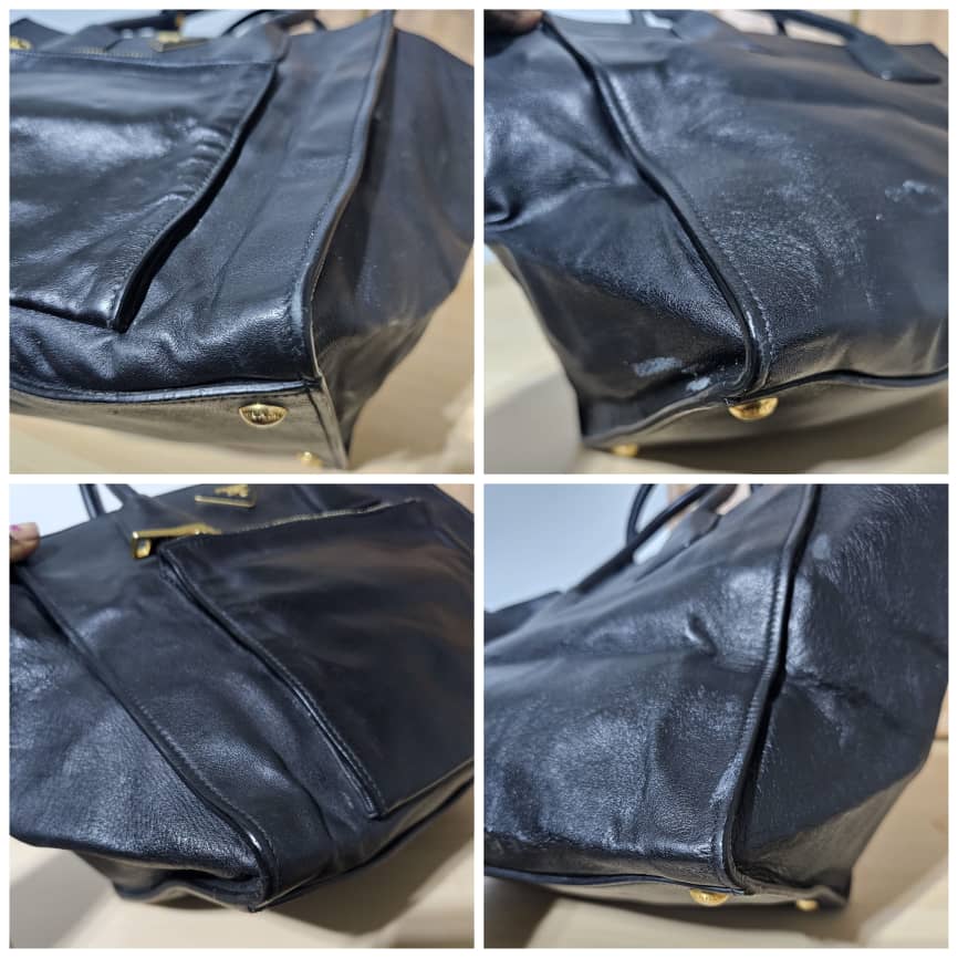 This authentic PRADA Vitello Daino Shopping Tote Nero Black is in it’s good pre-owned condition. The exterior leather is clean and beautiful. The interior is clean. Can be worn as a shoulder bag with strap. I will add a black strap.