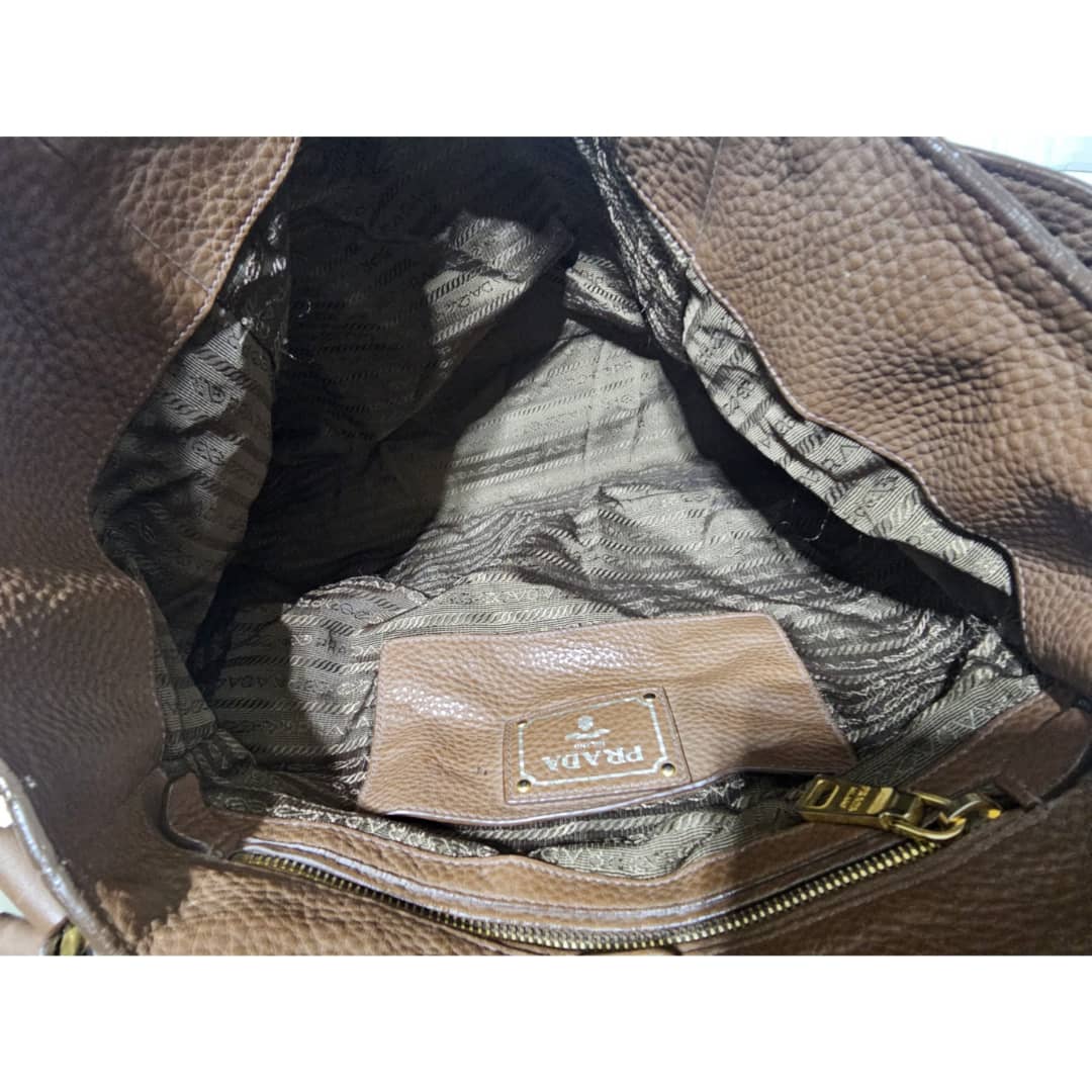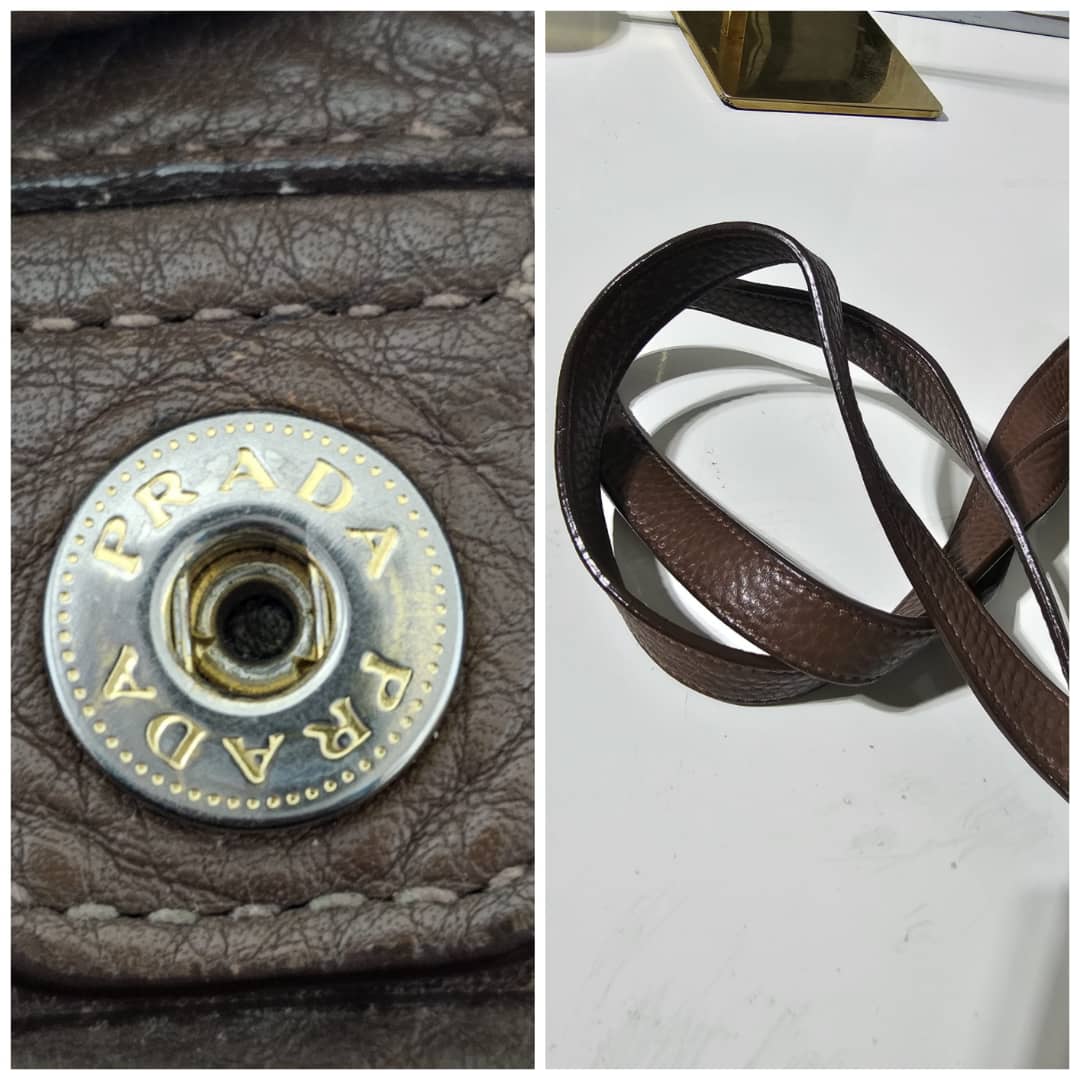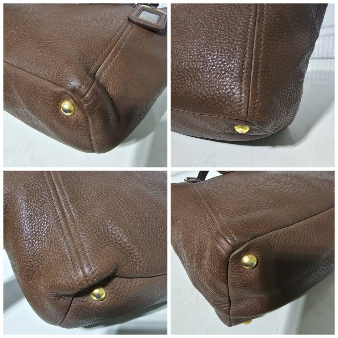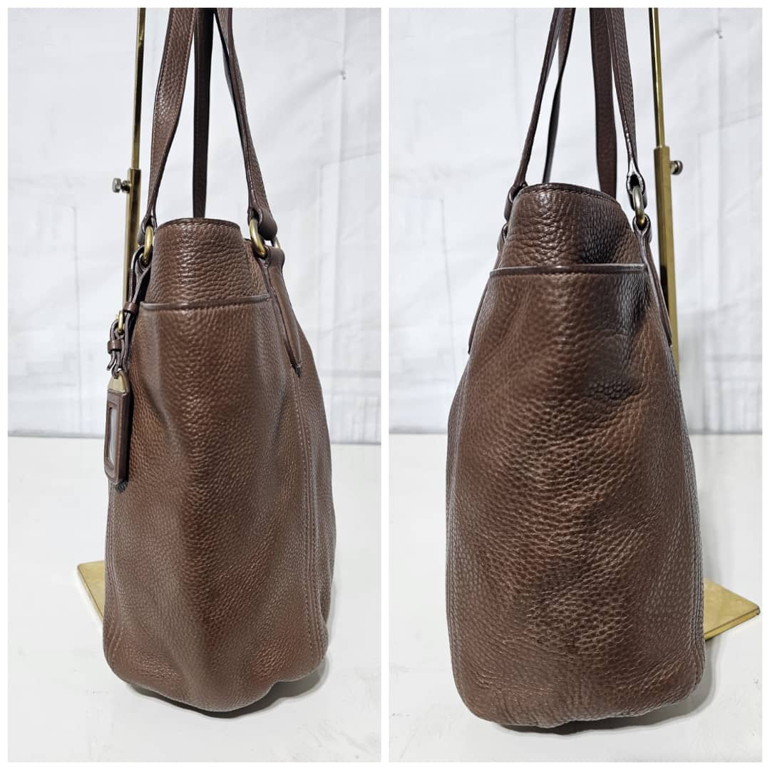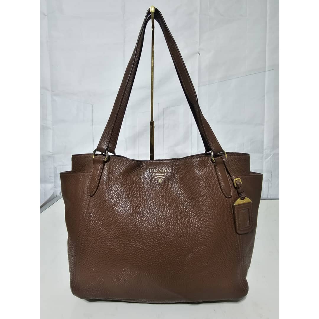 This authentic Prada Vitello Daino Tote Bag Brown is in it’s good pre-owned condition. The exterior leather is clean and beautiful with little hairline scratch. Interior is clean. Gold hardware. Beautiful tote bag.